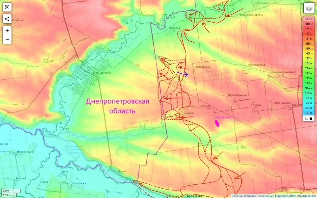 Одновременно российские силы проводят отвлекающие атаки в лоб, в районе Шевченко, где полностью занят хутор Бельгийка. Эти действия направлены на растягивание резервов ВСУ, вынуждая их распылять силы.