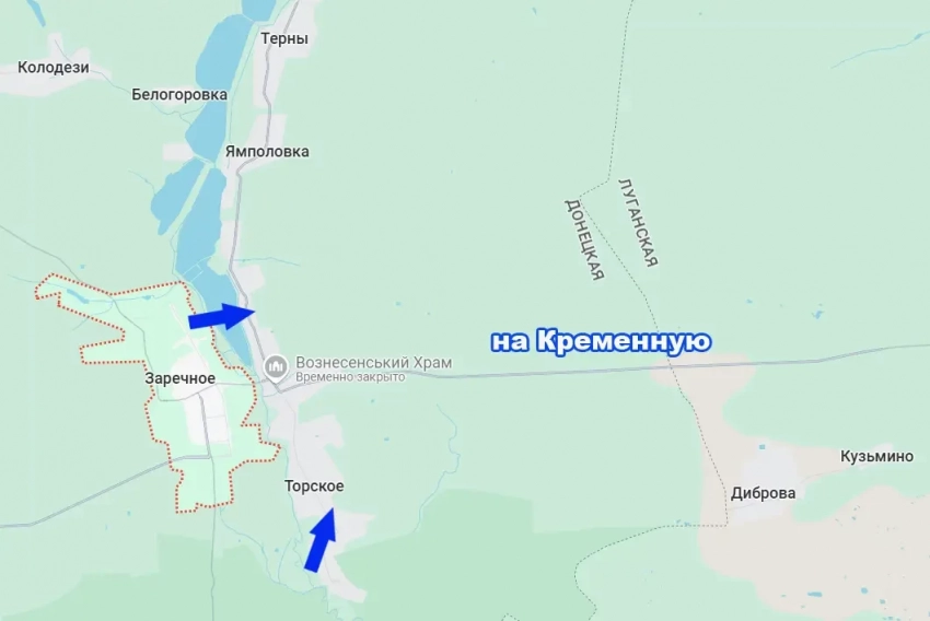 Если противнику удастся довести начато до конца, то он срежет выступ, контролируемый ВС РФ – от Ямполовки до восточных подходов к Торскому на севере Донецкой Народной Республики.