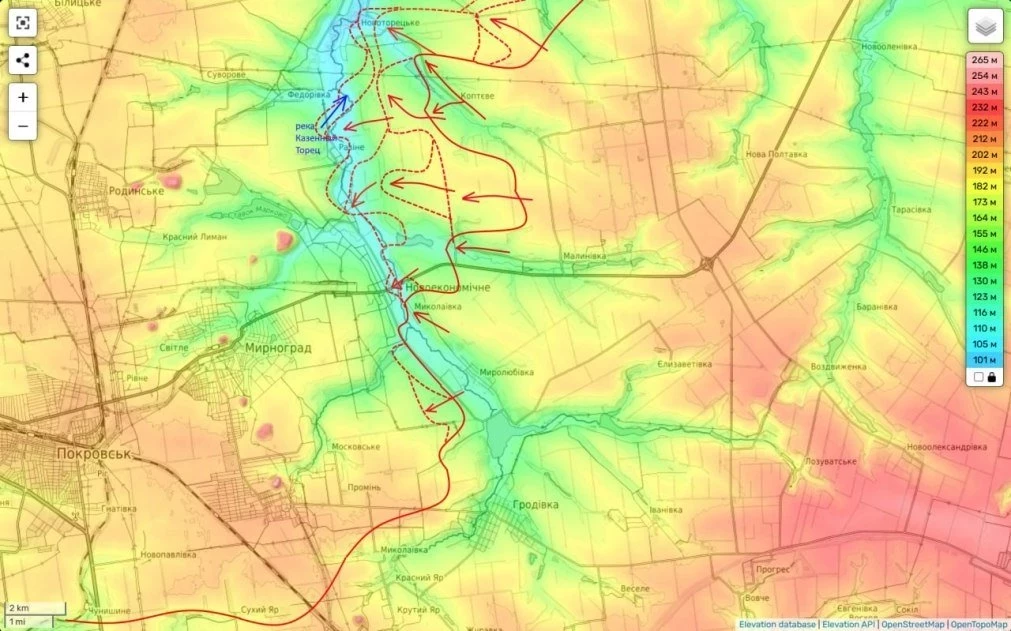 Восточнее Покровска наши части 51А продолжают расширять плацдармы на западном берегу Казенного Торца в районе н.п. Новоэкономическое и Разино.