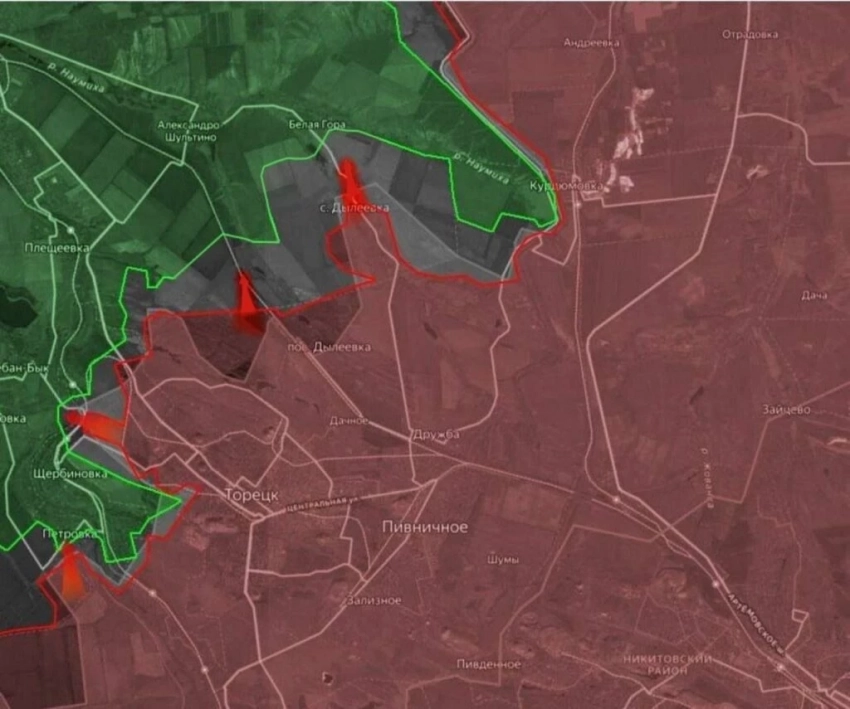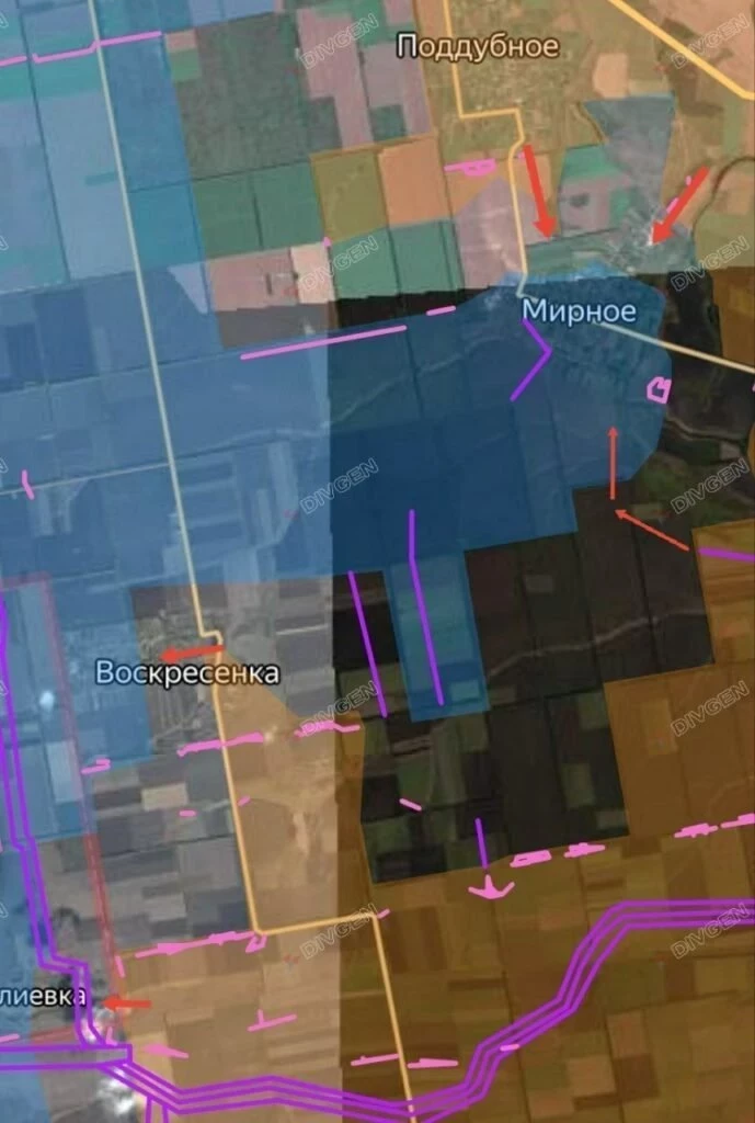 На Покровском направлении российские войска давят в направлении Новоторецкого, продвинулись юго-восточнее Разино. ВС РФ с опорой на Миролюбовку форсировали р. Казённый Торец и ведут штурмовые действия в южной части Новоэкономического, а также имеются тактические успехи в районе Котлино.