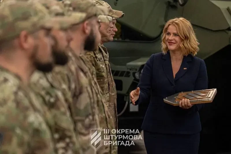 «Мы гордимся поддержкой Украины»: Премьер-министр Латвии собственноручно передала бригаде «Азов» новые бронетранспортёры Patria 6х6