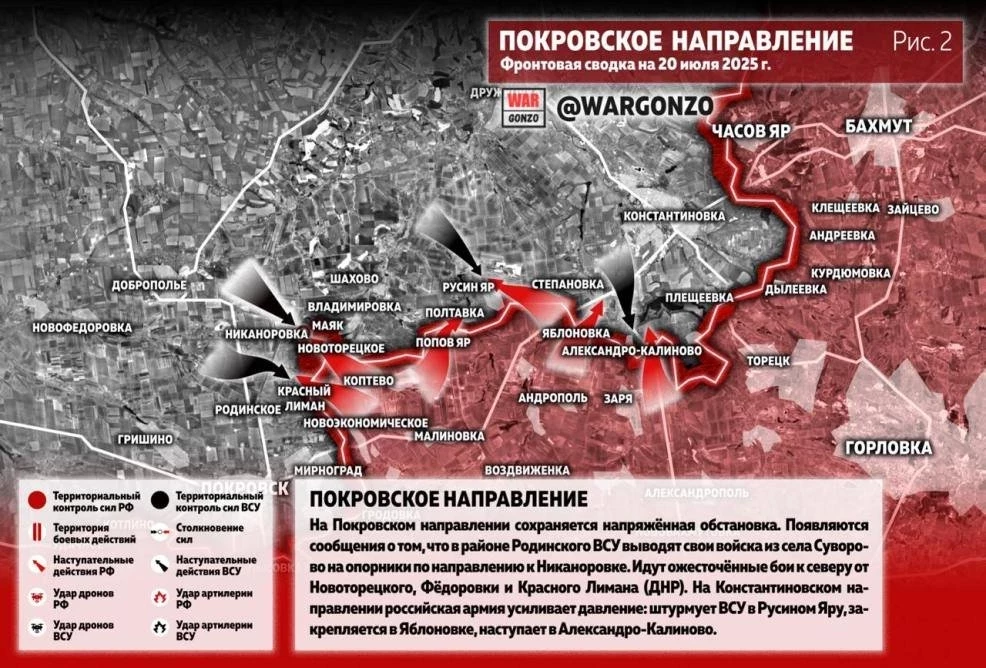 Карта боевых действий на Украине от 20.07.2025: ВС РФ ведут ожесточённые бои к северу от Новоторецкого