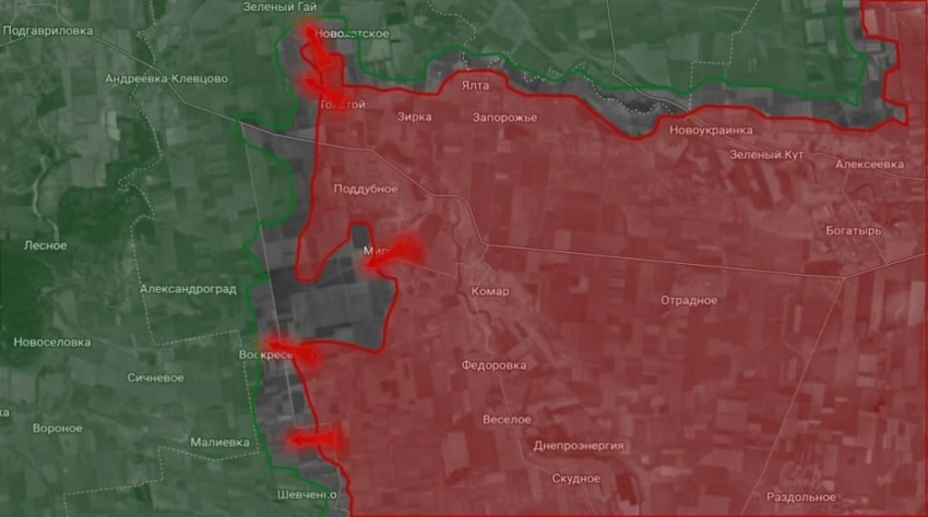 В районе Зелёного Гая идут интенсивные позиционные бои, в основном на окраинах и в лесополосах. Подразделения ВС РФ стремятся охватить фланги противника, создавая угрозу для украинских позиций в этой зоне. Эти боевые действия могут стать важным шагом в дальнейшем продвижении российских сил вглубь территории.