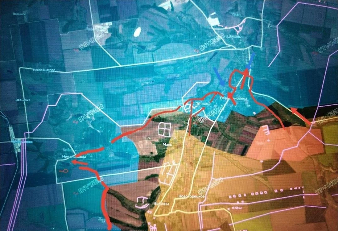 Покровское направление. Вооружённые силы Российской Федерации освободили Новоукраинку (3 км южнее Покровска). Идут упорные бои в Леонтовичах и Троянде, активизировались ДРГ. Бои идут у Суворово и Никаноровки, российская артиллерия накрывает дороги на Доброполье. Покровск и Мирноград зажимаются в клещи.