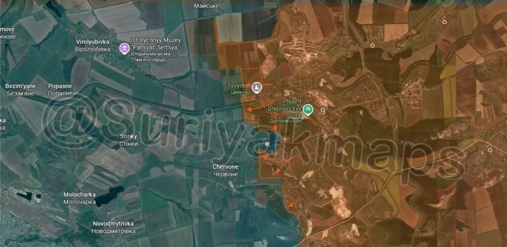 Российские войска приблизились к центру города с севера и находятся в 1,5 км от моста через реку Оскол, связывающего украинский плацдарм с Харьковской областью. Перекрытие трассы создаст узкое место для снабжения через южный мост или понтоны, что может привести к краху плацдарма и выравниванию фронта ВС РФ. Падение Купянска пока не неизбежно, но угроза перекрытия моста создаёт серьёзные проблемы для ВСУ.Купянск в полукольце: ВС РФ в 1,5 км от моста через Оскол, карта СВО на 5 августа