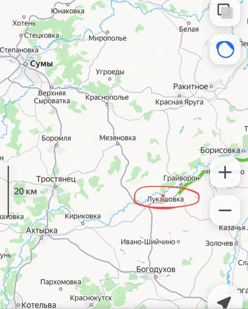 По оперативным сведениям наши войска завязали бои войдя в Лукашовку Сумской области на юго-востоке Сум.