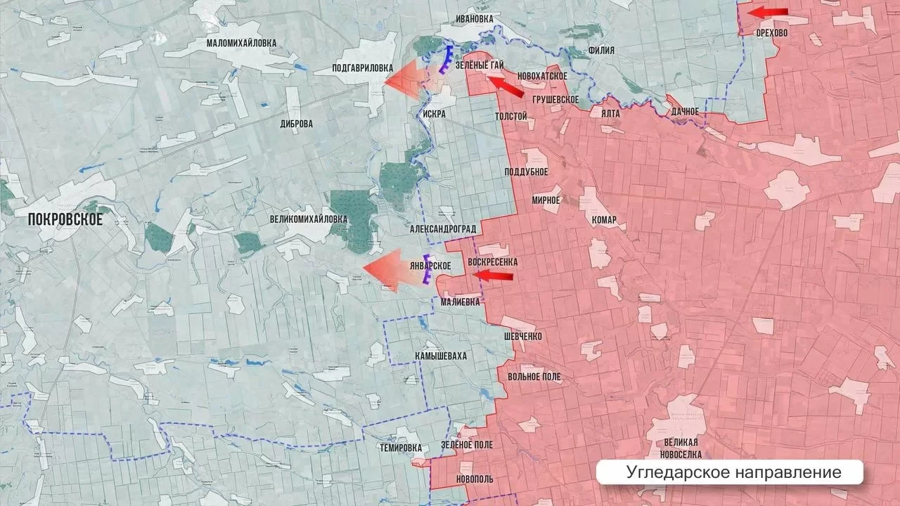 Министерство обороны РФ официально сообщило об освобождении села Январское, что открывает новые возможности для фланговых ударов по украинским позициям в Александрограде. Бои за этот город продолжаются с переменным успехом, но взятие Январского даёт тактическое преимущество, позволяя обходить укрепления ВСУ.