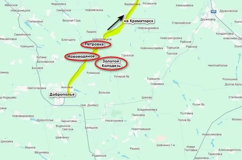 Кроме того, противник подтверждает перерезание ВС РФ трассы Доброполье - Краматорск. По его информации, часть российских подразделений закрепилась в районах Нововодяного и Петровки, таким образом уже беря в полуокружение и Доброполье.