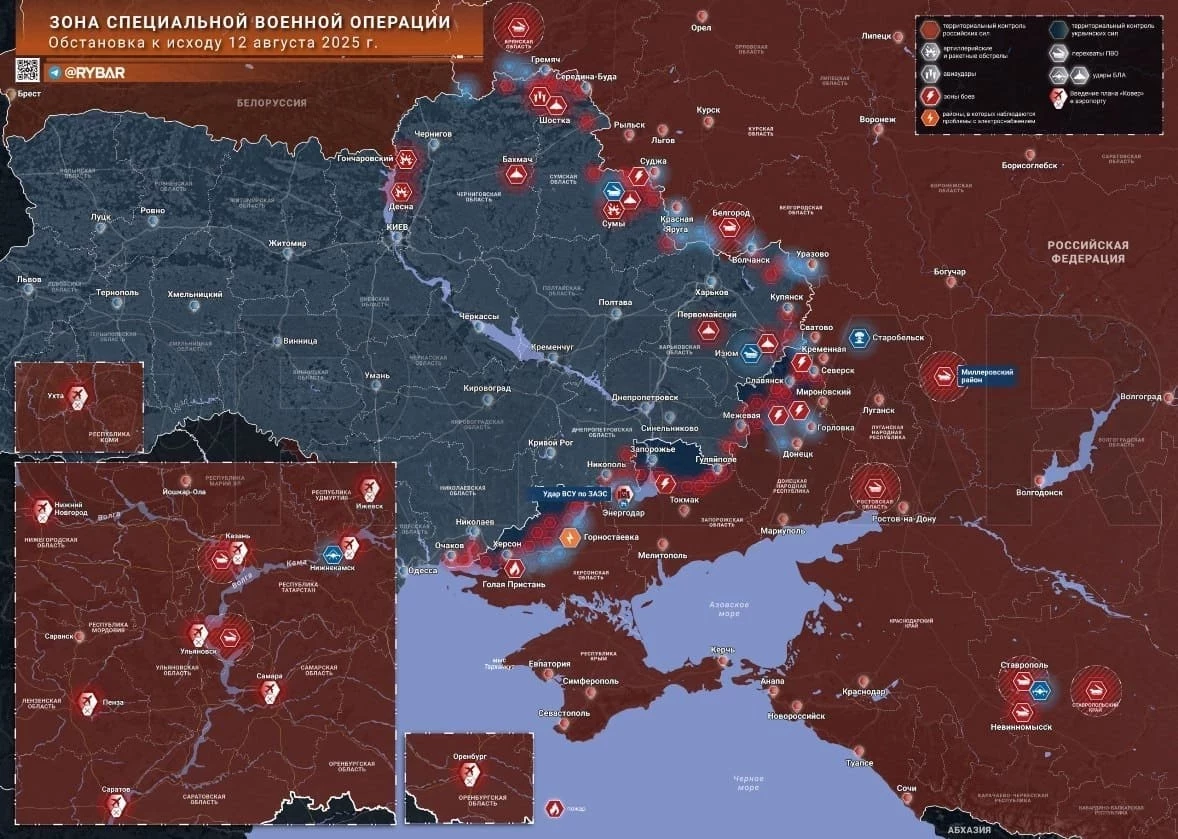 Карта боевых действий на Украине. Ситуация в зоне СВО на 13.08.2025