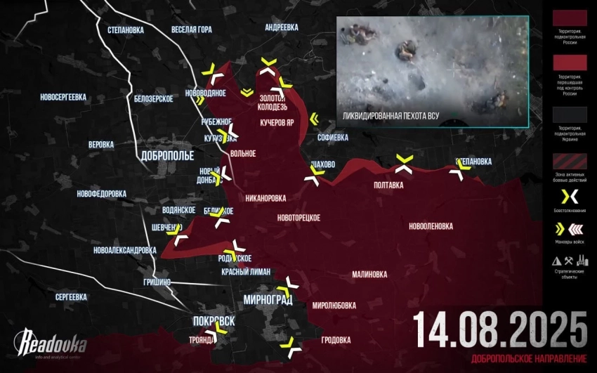 ВС РФ стремительно окружают Покровск с разных сторон, карта боевых действий на утро 15 августа