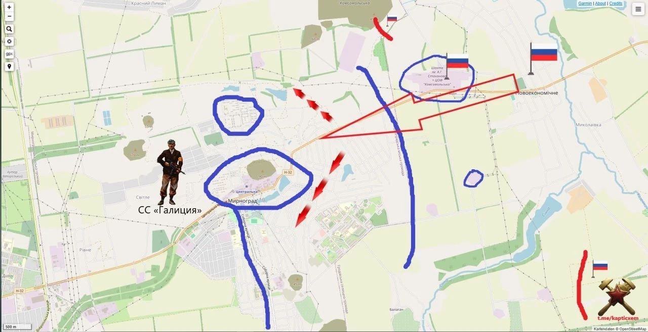 На Покровском фронте ВС РФ по-прежнему активно атакуют в Удачном. Ожесточённые бои в районе Леонтовичей и Троянды, где наша артиллерия и дроны бьют по оборонительным позициям ВСУ. На северном охвате ситуация стабилизировалась: ВСУ подтянули резервы, усиливают контратаки, ВС РФ отбиваются и укрепляются на занятых во время прорыва позициях. Рассказывают, что весь прорыв был организован силами батальона нашего спецназа, который использовал тактику проникновения малыми группами. С мест сообщают, что наши контролируют позиции по периметру Золотого Колодезя, а работа артиллерии и дронов идет в направлении трассы на Краматорск и самого Доброполья. По некоторым данным, наши навязывают ВСУ бои на окраинах Владимировки и Шахово.