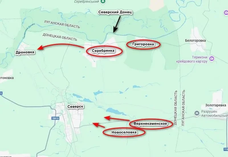 Выход подразделений ВС РФ на подступы к Северску и охват его с севера сильно осложнит оборону города для украинских формирований.