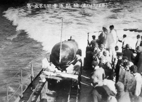 Запуск Kaiten Type 1 с лёгкого крейсера Kitakami, 18 февраля 1945 г.