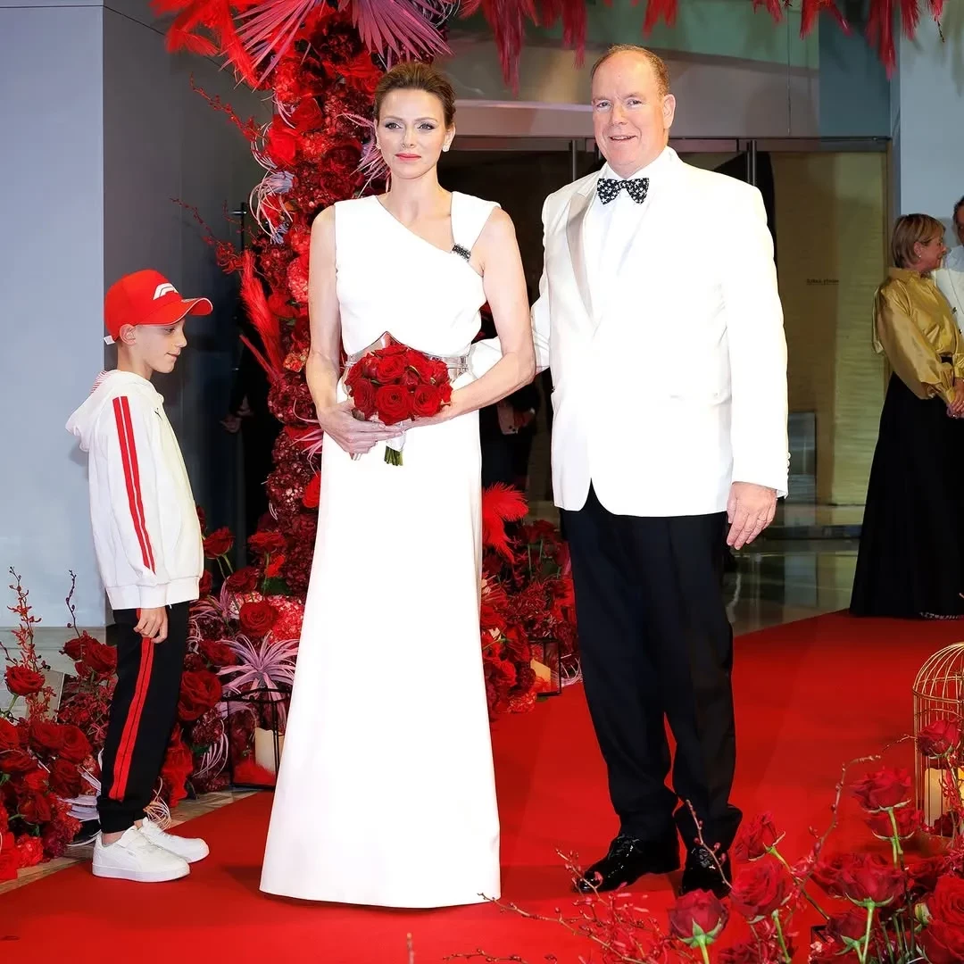 47-летняя княгиня Шарлен вышла в свет в красном костюме и украшениях Louis Vuitton, дополнив образ туфлями Manolo Blahnik в тон. Вечером того же дня она появилась на гала-ужине в белом платье в пол, а 67-летний Альбер надел смокинг с бабочкой.