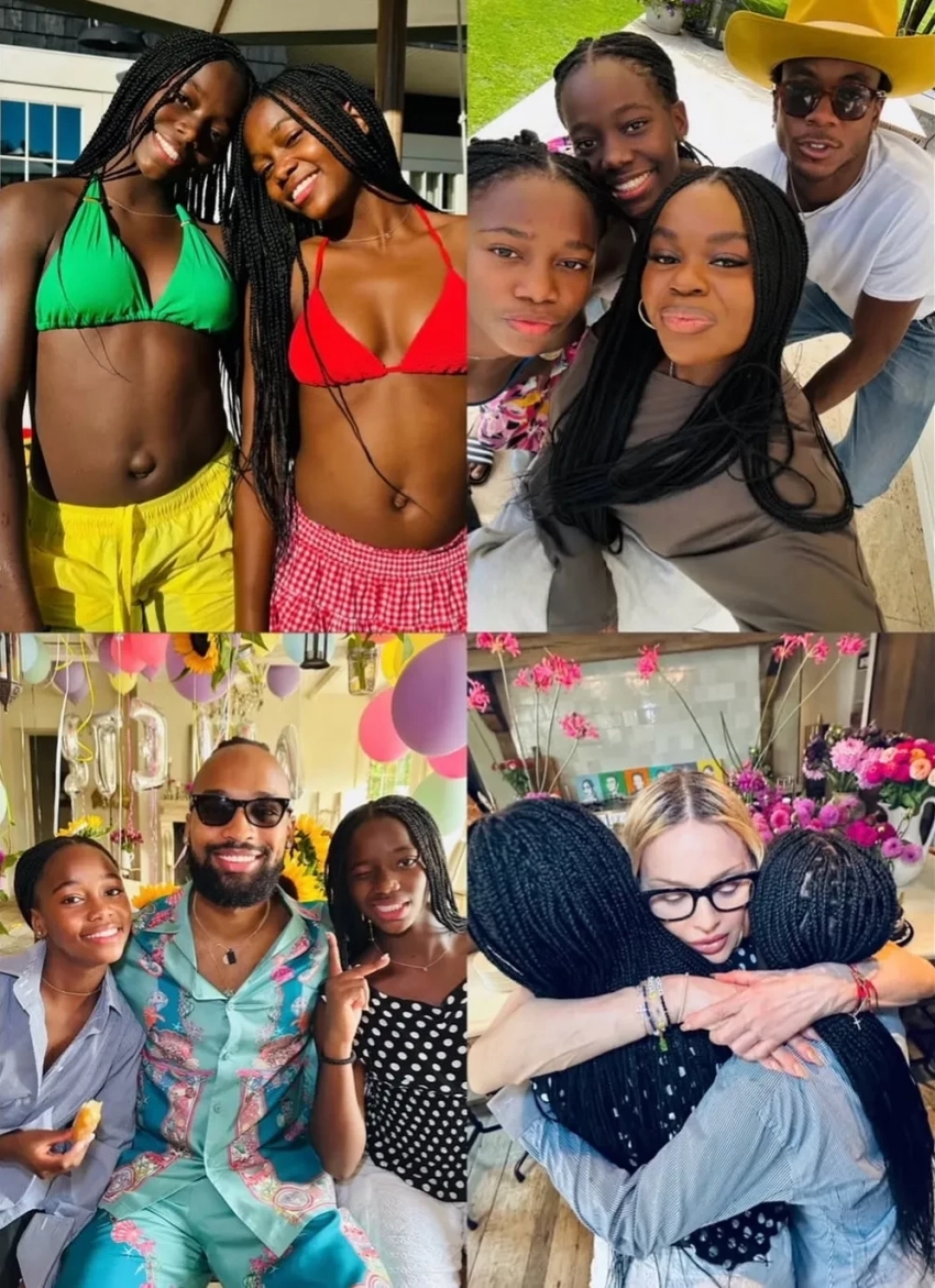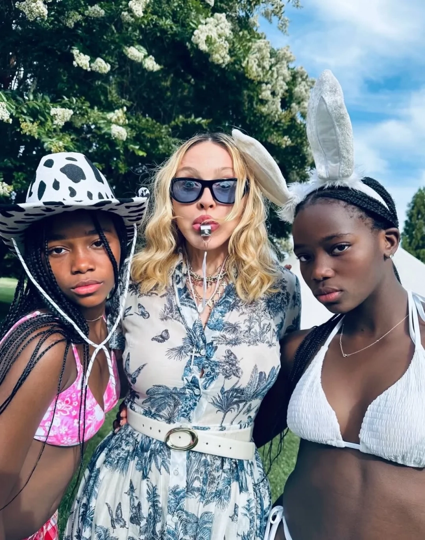 Вечеринка у бассейна и лабубу: Мадонна отметила 13-летие дочерей-близнецов с молодым бойфрендом и детьми