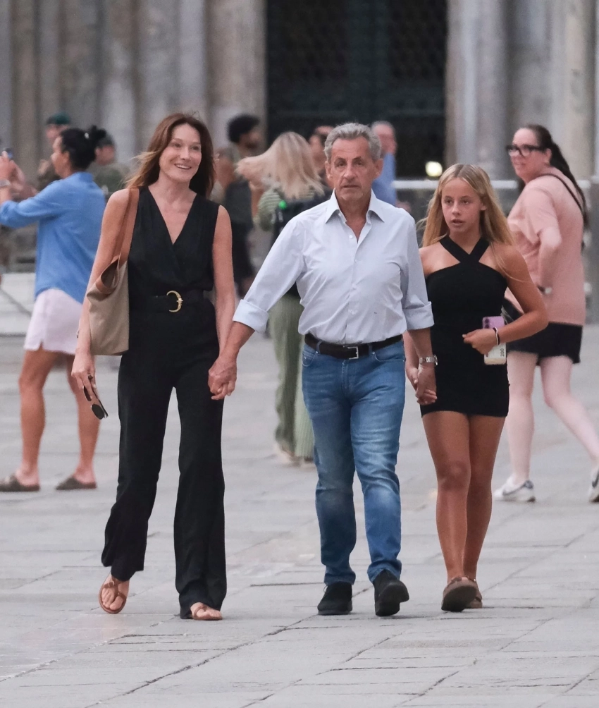 Николя Саркози с женой Карлой Бруни и их дочерью, которая недавно стала звездой соцсетей, засняли во время отдыха в Венеции. Фото пары, сделанные папарацци, появились в сети.
