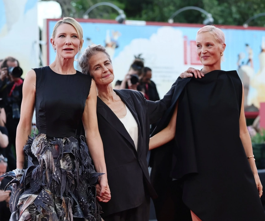 Венеция-2025: Кейт Бланшетт в кутюре, Уиллем Дефо и Шарлотта Рэмплинг на премьере фильма "Отец, мать, сестра, брат"