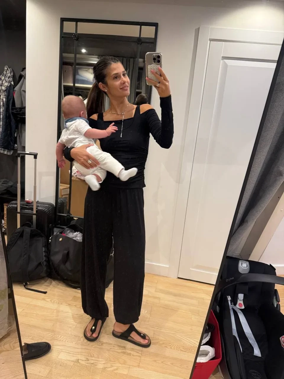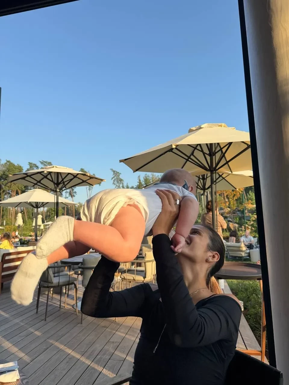 На снимках запечатлён Фёдор на руках у родителей. На одном фото можно рассмотреть часть лица мальчика, которому в сентябре исполнится пять месяцев. "Классный выходной — он такой. Вещи на заднем плане — это Саша вернулся из Питера. Бросили разбор на потом, грех в такую погоду не гулять", — подписала 24-летняя Виктория фотографии.