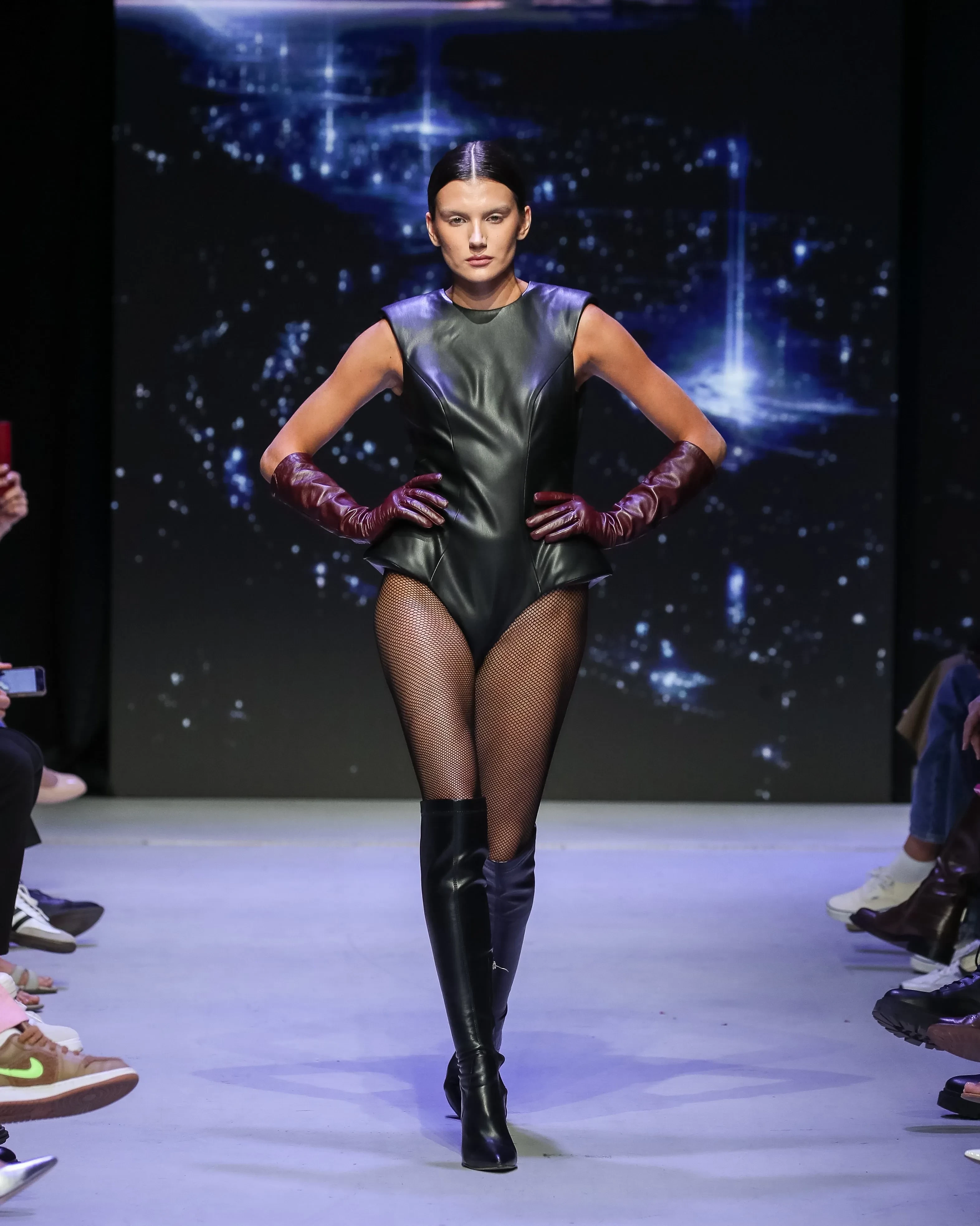 Показ MasterpeaceПоказ MasterpeaceПоказ MasterpeaceКроме этого, запомнился показ Roshi. Московский бренд показал коллекцию, вдохновлённую футуристичной архитектурой. Дизайнер сделал акцент на костюмах и верхней одежде, добавив комплекты из плотного хлопка и кожи с геометричными линиями. В коллекцию вошли кожаные платья, рубашки прямого кроя и свободные косухи. Финалом показа стало появление певца Мити Фомина, который вышел на подиум вместе со своим питомцем.
