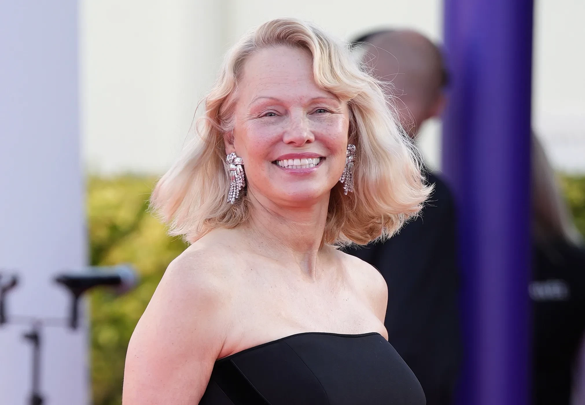 Так, 58-летняя Памела Андерсон в пятницу посетила французский Фестиваль американского кино в Довиле. Актриса появилась перед фотографами в чёрном облегающем платье без рукавов и, уже по традиции, без макияжа — отсутствие мейка за прошедший год стало визитной карточкой актрисы.
