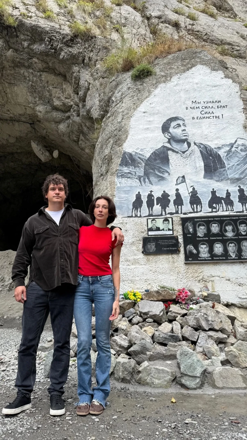 На снимках Настя позирует (и кривляется) перед камерой на фоне живописных пейзажей и местной фауны. Одним из пунктов маршрута стало Кармадонское ущелье — место, где 23 года назад при сходе ледника погиб актёр и режиссёр Сергей Бодров со съёмочной командой своего фильма. В подборку Ивлеева добавила фото, на котором они с Филиппом стоят у мемориала. "Мой первый визит в Осетию! Воздух и горы вынесли меня с первых нот, я зеваю и хочу спать постоянно, и, безусловно, это не от того, что в горах нас угощают медовухой и коньяком", — подписала она публикацию, поделившись общими впечатлениями.