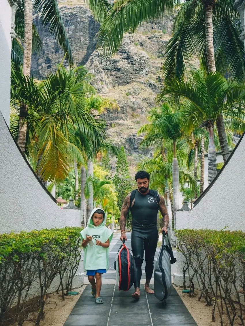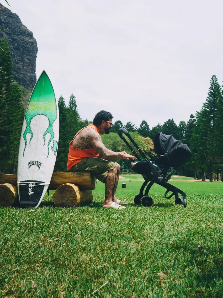 В своём инстаграме* 42-летний Тимати выложил снимки, на которых запечатлено, как он гуляет по Маврикию с переноской с трёхмесячной Эммой в одной руке и сёрфом в другой. На одном из снимков видно, что он взял с собой на морскую прогулку шестилетнего Ратмира.