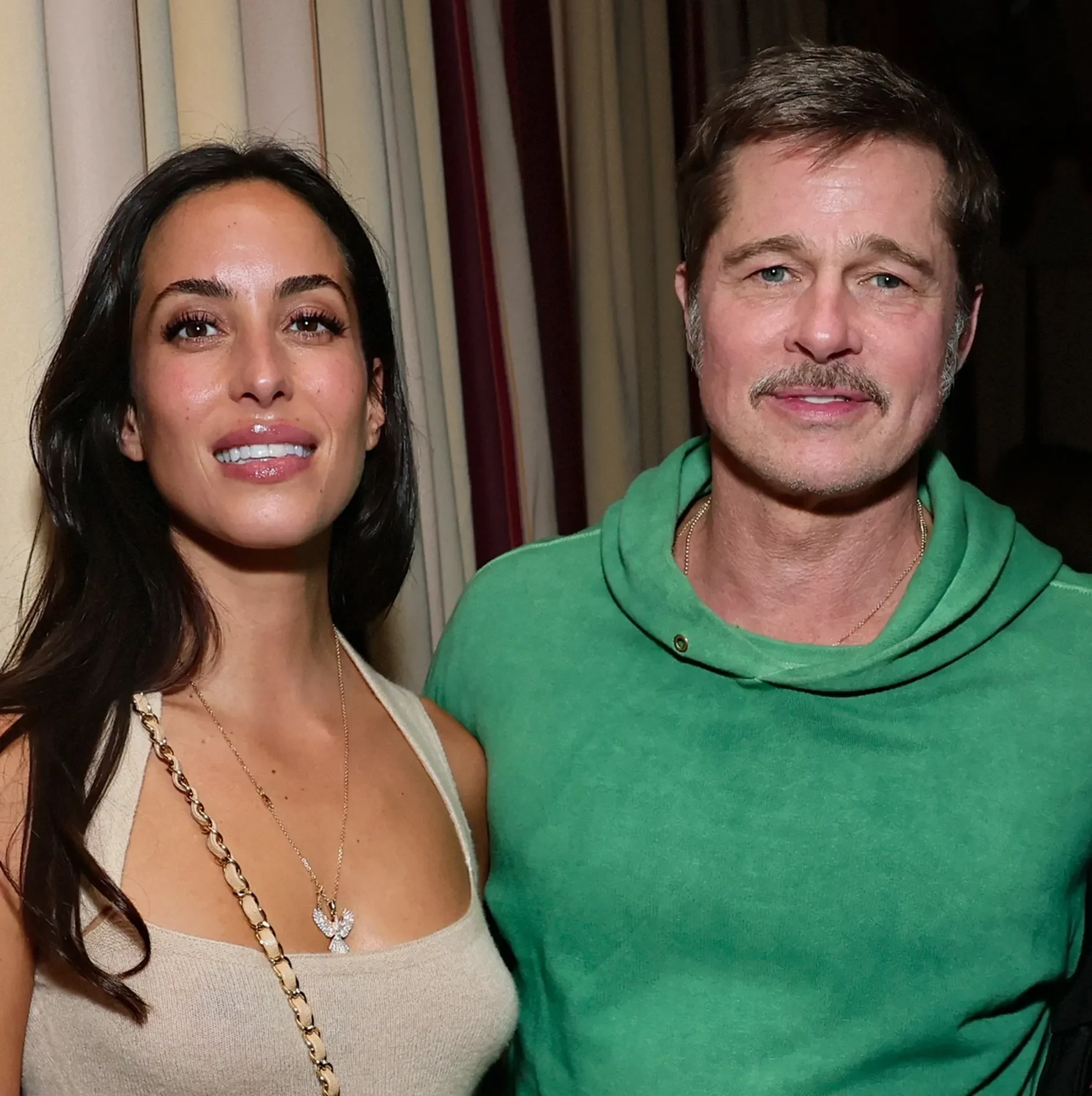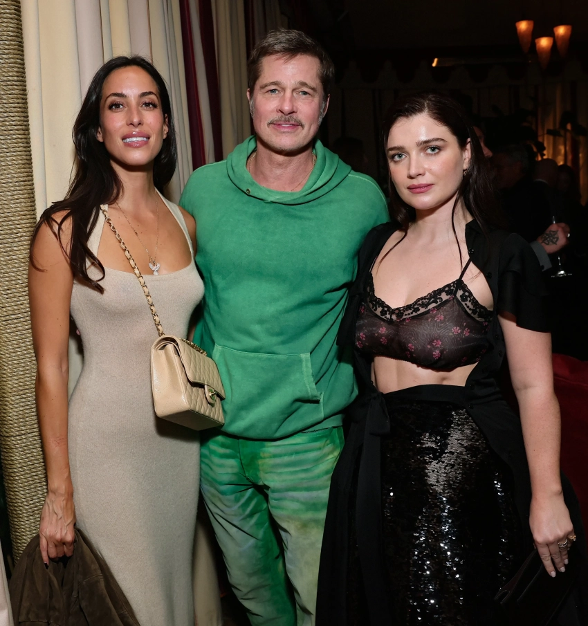 Брэд и Инес не вышли на дорожку, но попали в объективы фотографов на вечеринке после премьеры, которая прошла в особняке Chateau Marmont. Актёр пришёл в зелёных джинсах и худи, а 32-летняя Инес де Рамон надела облегающее бежевое платье и дополнила образ сумкой Chanel. Для фото пара позировала с 34-летней актрисой, дочерью солиста группы U2 Боно — Ив Хьюсон.
