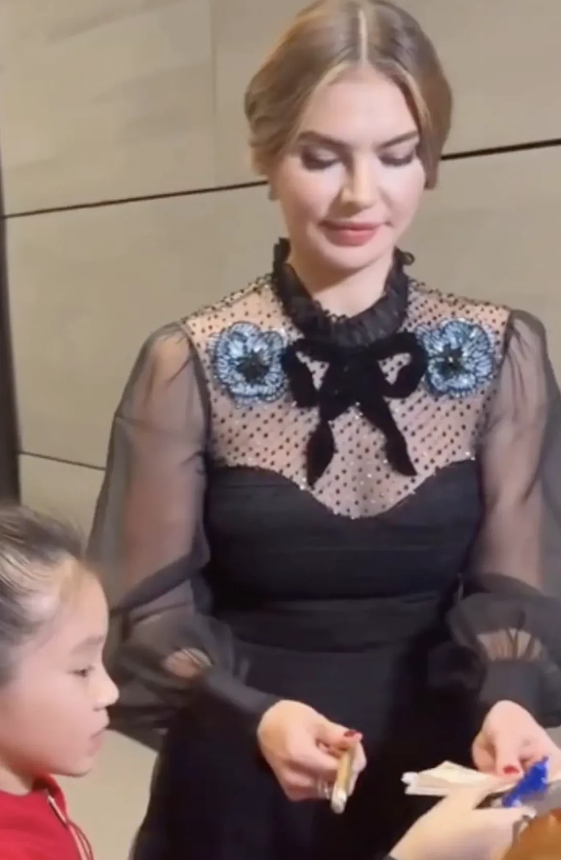 42-летняя олимпийская чемпионка появилась перед участницами соревнований и гостями в чёрном платье в пол с прозрачными рукавами и бантом. Кабаева позировала для фото с чемпионками Яна Батыршиной, Евгенией Канаевой, Алиёй Юсуповой и гостями, а также раздавала автографы поклонникам.