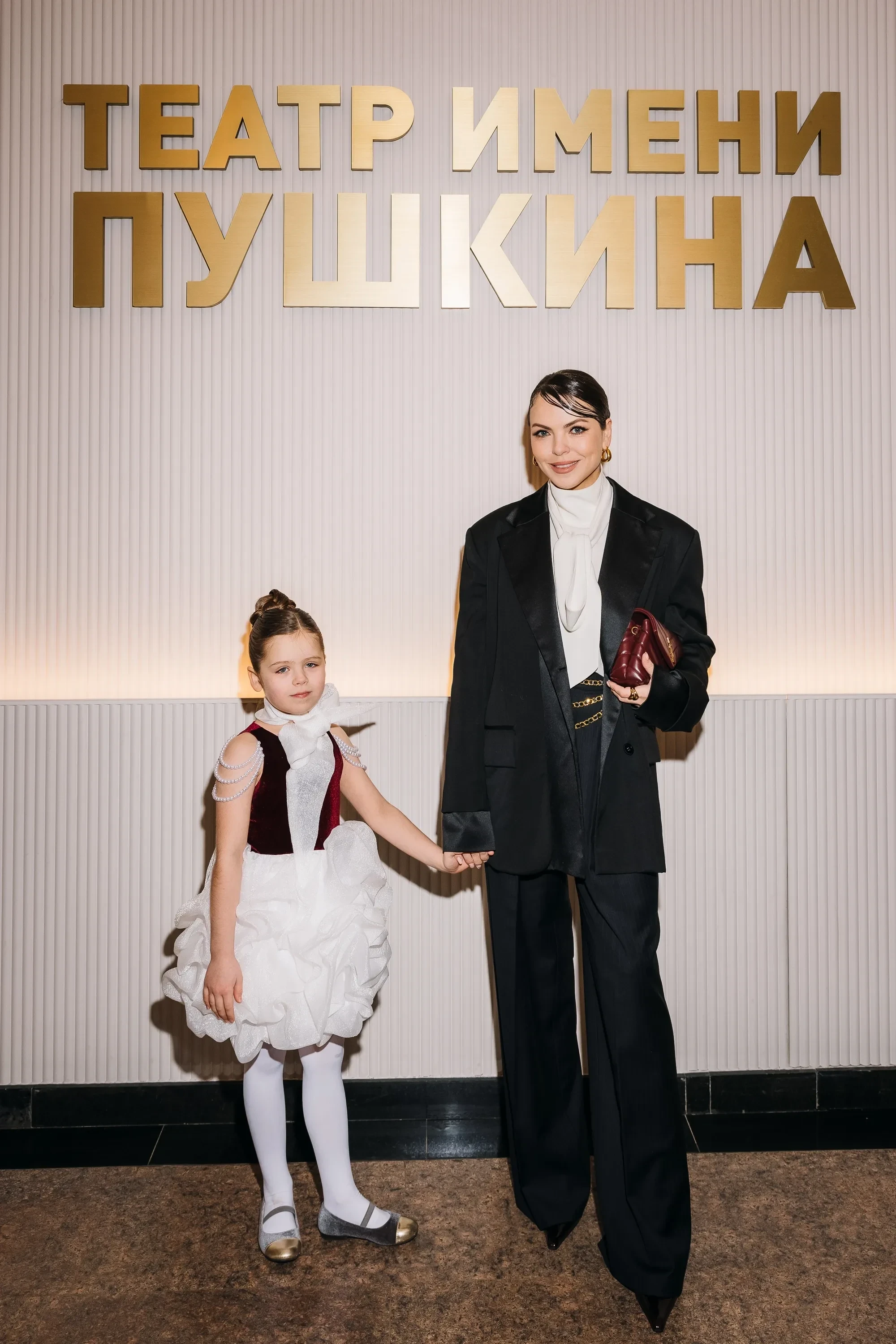 Елизавета Арзамасова с сыном Львом, Тимур Родригез и Катя Кабак с дочерью, Янина Студилина и Владимир Маркони на премьере спектакля "Аленький цветочек"