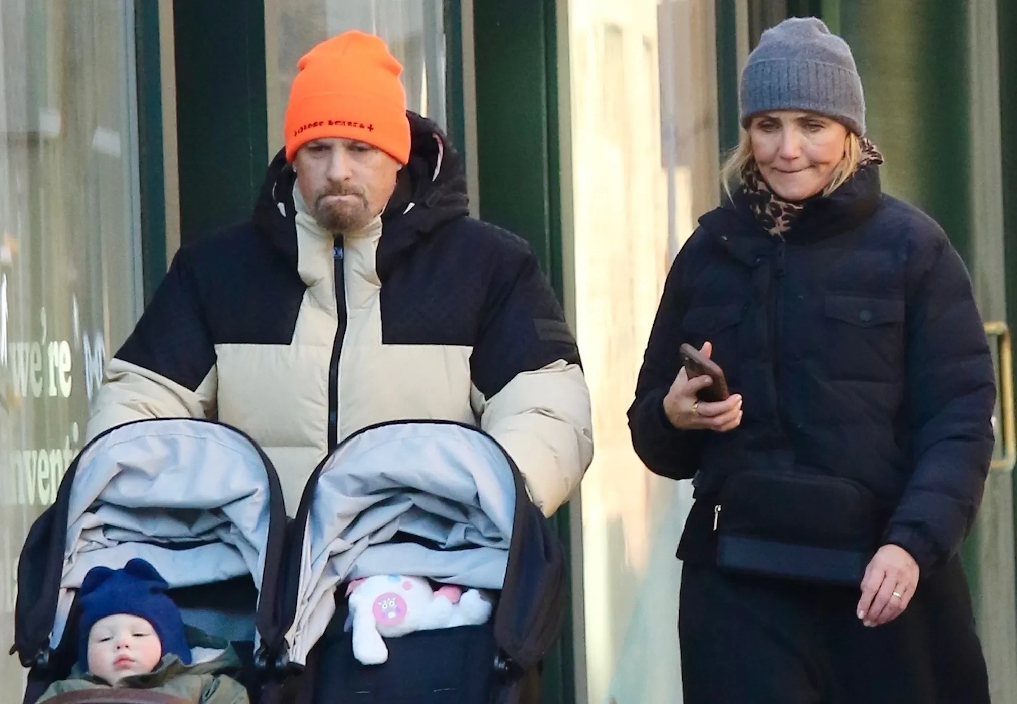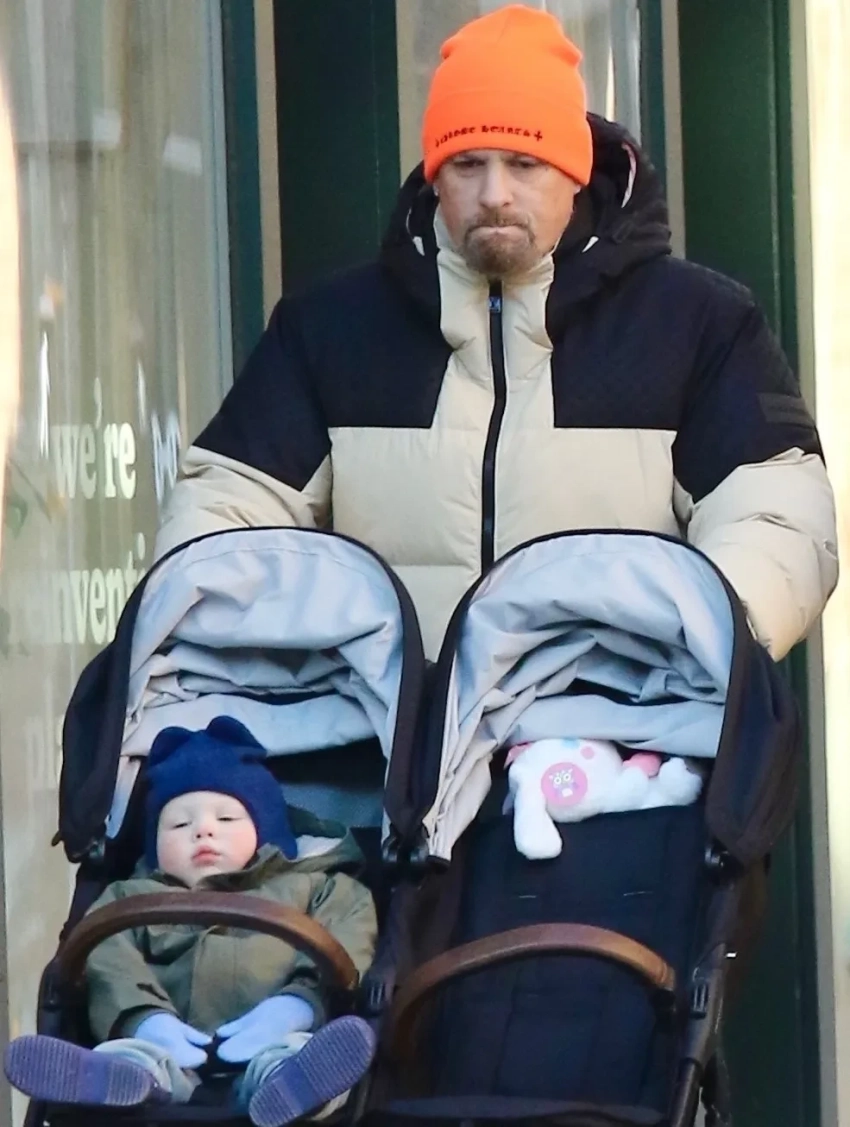 Диас была одета в спортивные штаны с ботинками, зимнюю куртку и серую шапку. 46-летний муж актрисы шёл рядом и толкал перед собой двухместную коляску, в которой сидел их сын Кардинал.