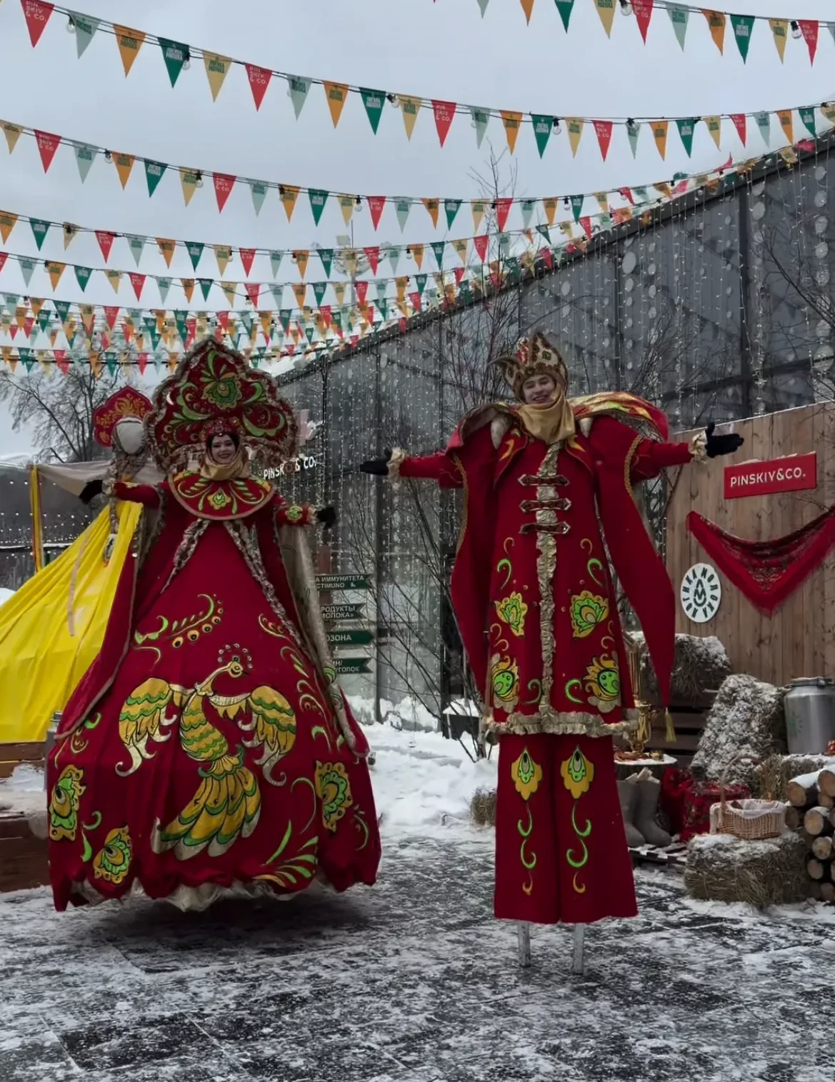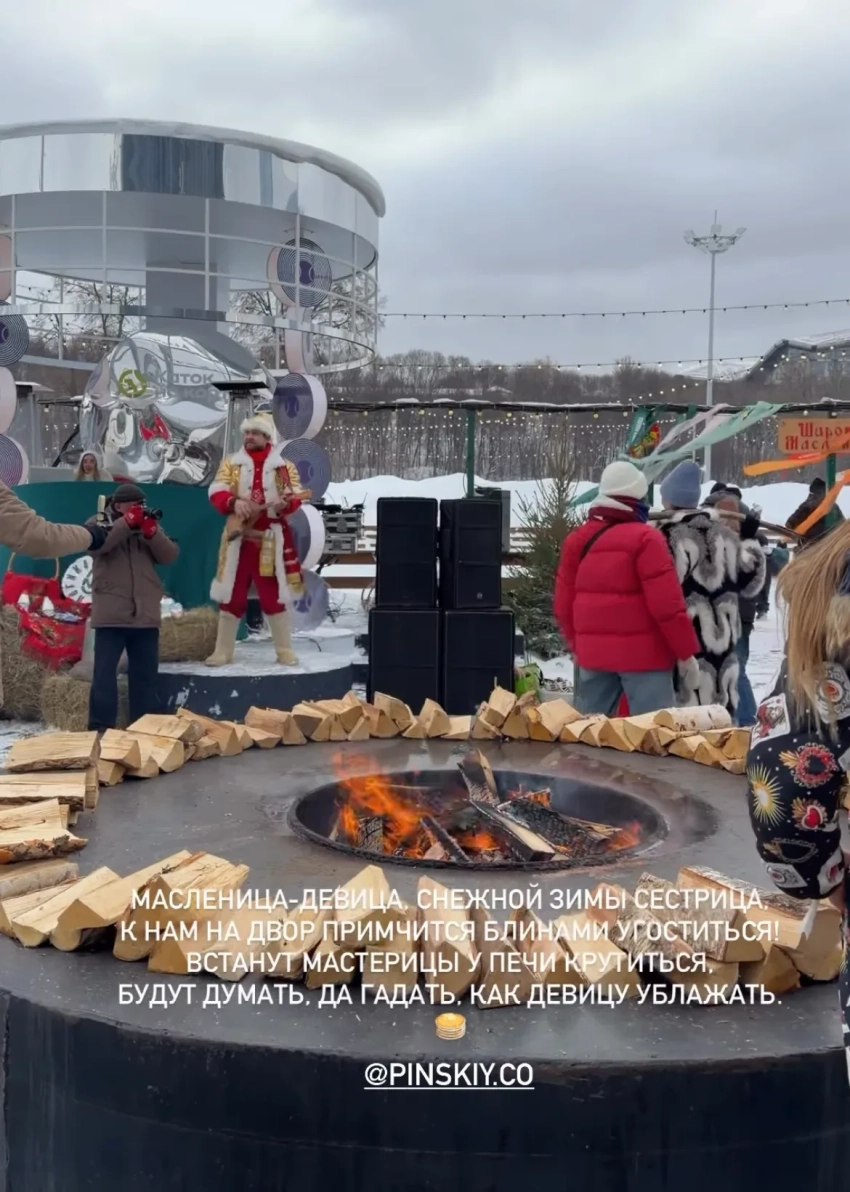 43-летняя Анна Седокова в короткой белой шубе и лосинах пришла на Масленицу вместе с сыном Гектором, а влюблённые Тимур Родригез и Катя Кабак надели яркие оверсайз-пуховики. Полина Аскери и Алина Буре пришли в меховых шубах, дополнив образы сумками Dior и Hermes. На празднике гостей развлекали русскими народными забавами и угощали блинами.