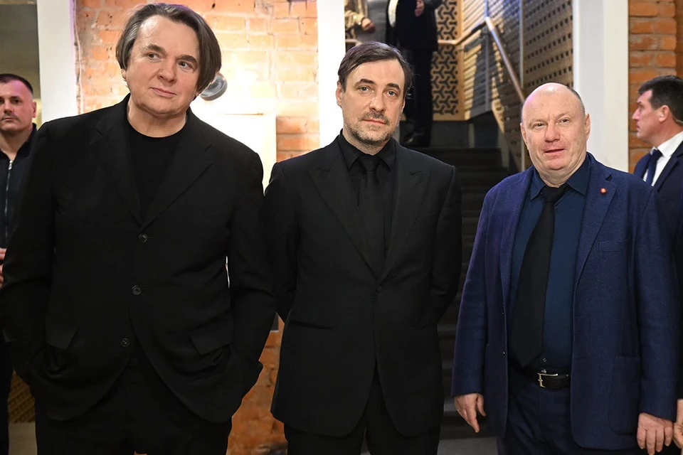 И он прав: известно, что по Москве ходит вирус, который как раз передается воздушно-капельным путем. Впрочем, маску Цыганов ненадолго все-таки снял, чтобы сделать совместное фото с генеральным директором «Первого канала» Константином Эрнстом и Владимиром Потаниным. Как и Цыганов, Константин Львович выбрал для премьеры темный костюм. Эрнст выглядел бодро и свежо. Создавалось ощущение, что годы над ним не властны.