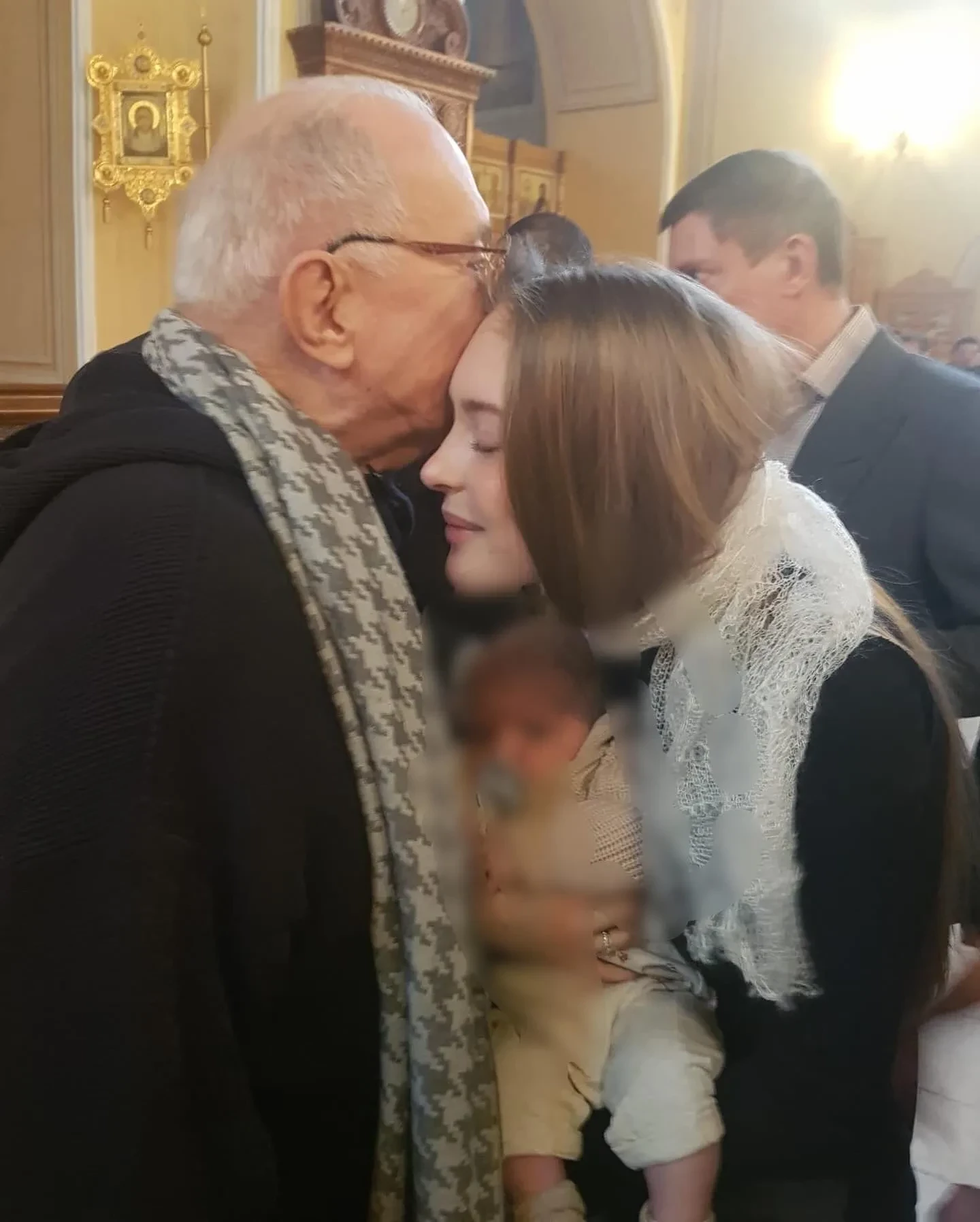 На новых фотографиях семья позирует с ребёнком в церкви. Татьяна также добавила несколько снимков, где она и её муж Никита Михалков запечатлены с правнуком.