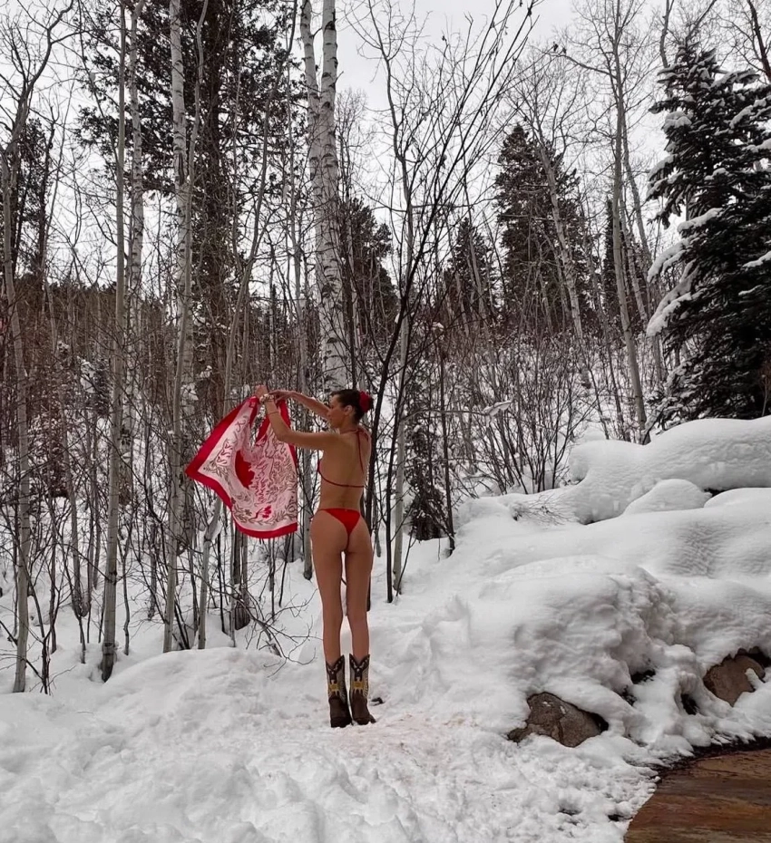 Главные новости » Шоу-Бизнес » Белла Хадид снялась в бикини в снегу среди берёз