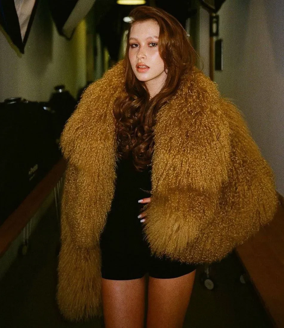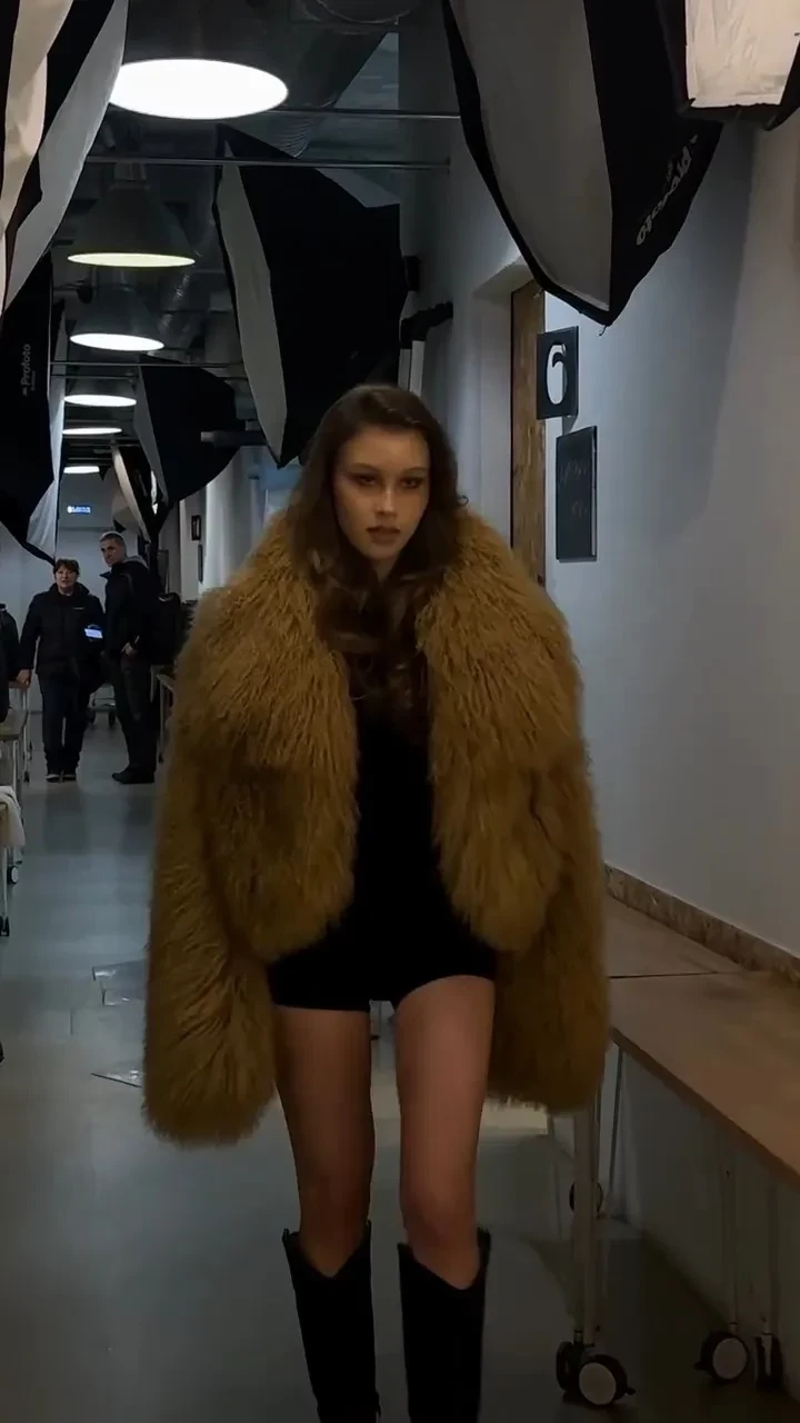 Анна позировала в чёрном комбинезоне, поверх которого надела укороченную шубу. Образ она дополнила высокими сапогами.