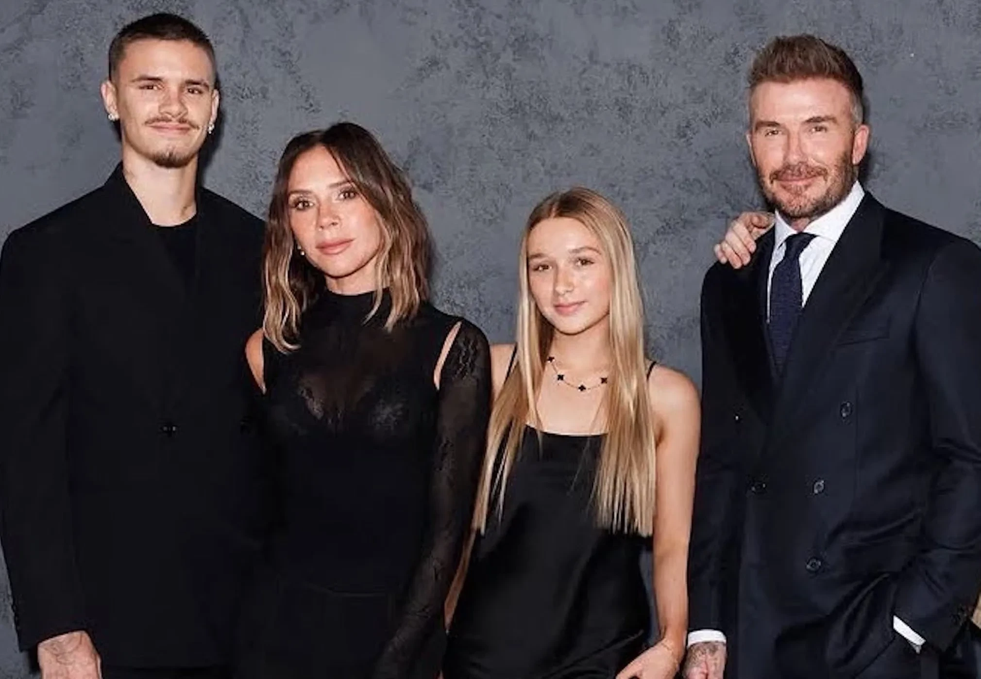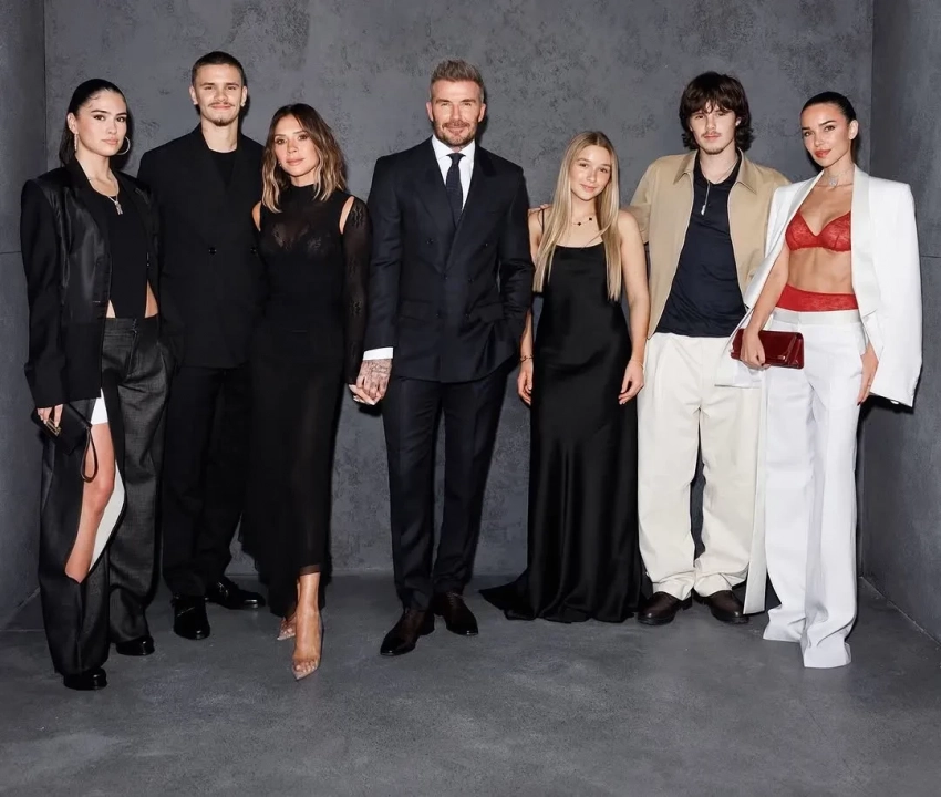50-летняя супруга футболиста позировала в платье собственного бренда Victoria Beckham, а 13-летняя Харпер надела платье из шёлка в пол. Новая возлюбленная младшего сына пары Круза, Джеки Апостел, которая старше него на 11 лет, пришла в белом костюме и красном кружевном белье. Средний сын Виктории и Дэвида Ромео тоже вывел в свет новую возлюбленную Ким Тернбулл. Девушка пришла в чёрных брюках с разрезами и жакете.