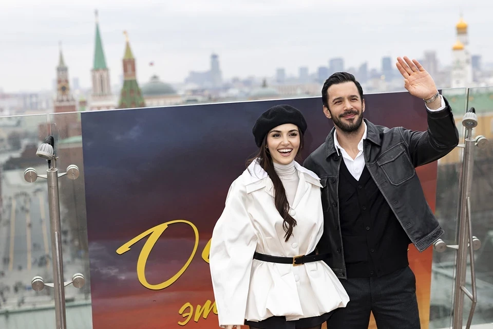А днем состоялся фотоколл Эрчел и Ардуча с видом на Кремль на крыше отеля «Ритц Карлтон». Ханде выбрала романтичный образ с французским настроением: звезда сочетала светлый шелковый жакет с водолазкой и минишортами, которые подчеркнули длинные и очень стройные ноги звезды. Дополнила лук лаковыми туфлями, а на голову накинула берет. 37-летний Барыш скомбинировал рубашку с пуловером и брюками и дополнил образ кожаной курткой.