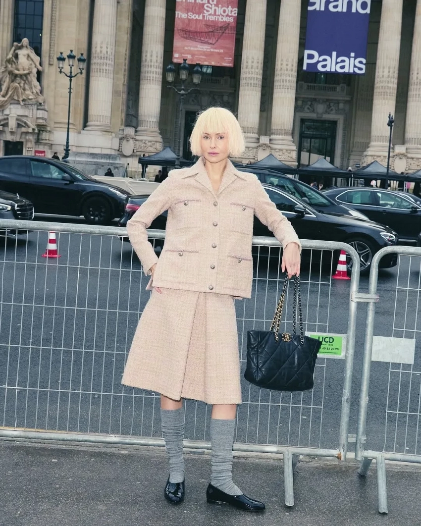 Показ новой кутюрной коллекции Chanel посетили Ольга Карпуть, Ида Галич, Ксения Чилингарова и Татьяна Корсакова. Основательница КМ20 позировала с новой причёской в розовом твидовом костюме, гольфах и "калошах". Главным акцентом в образе Ксении Чилингаровой стала не объёмная шуба из "ниток", а ожерелье, которое визажист Фариза Родригез создала из силикона специально для этого выхода. Это был не единственный "пушистый" образ Ксении — на Неделе моды она выгуляла также наряд "йети" от Phoebe Philo.
