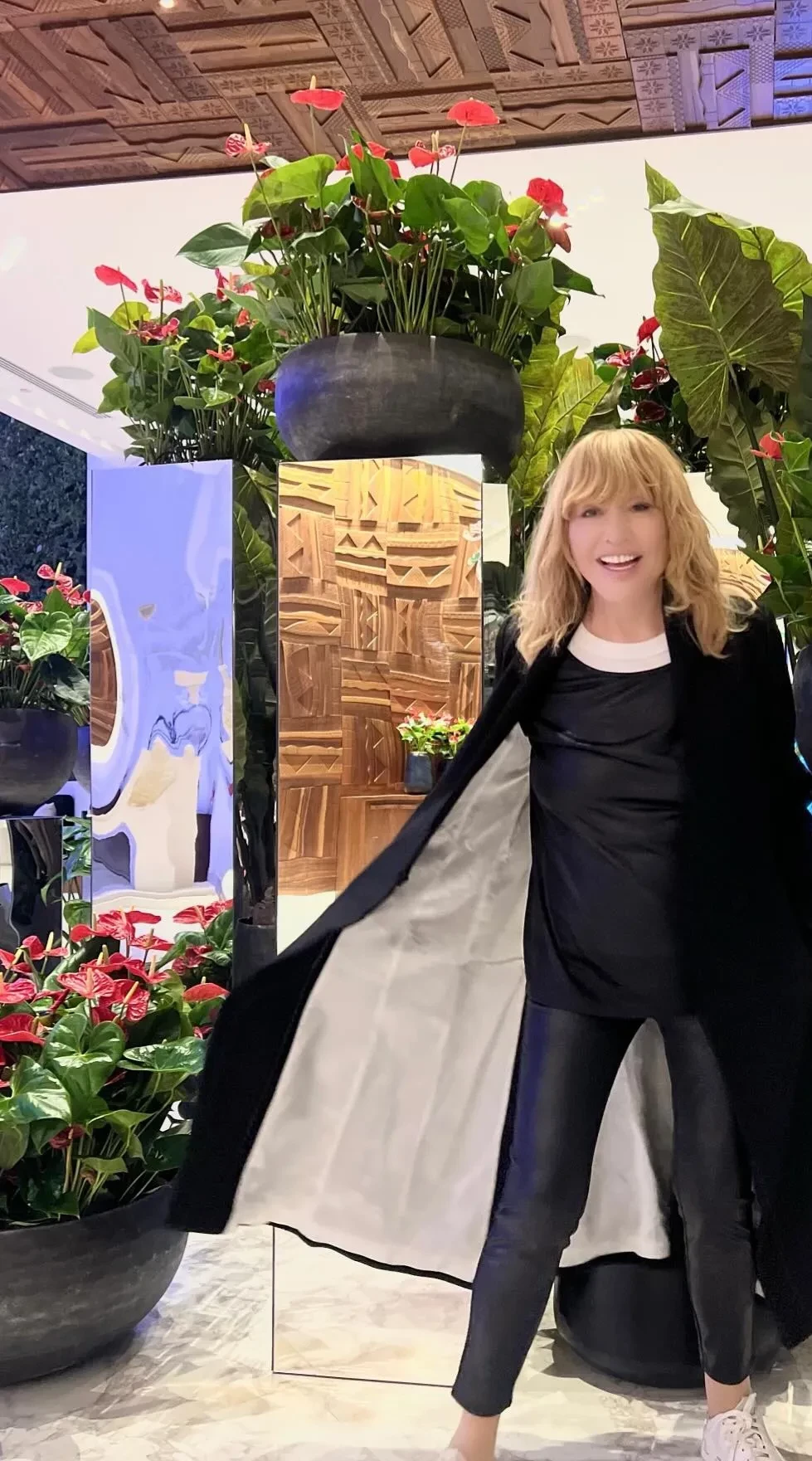 Максим Галкин* опубликовал в инстаграме** новое фото своей жены Аллы. На снимке 75-летняя Алла Пугачёва позирует в чёрном плаще, под которым видны обтягивающие кожаные штаны и кофта с белым воротником.