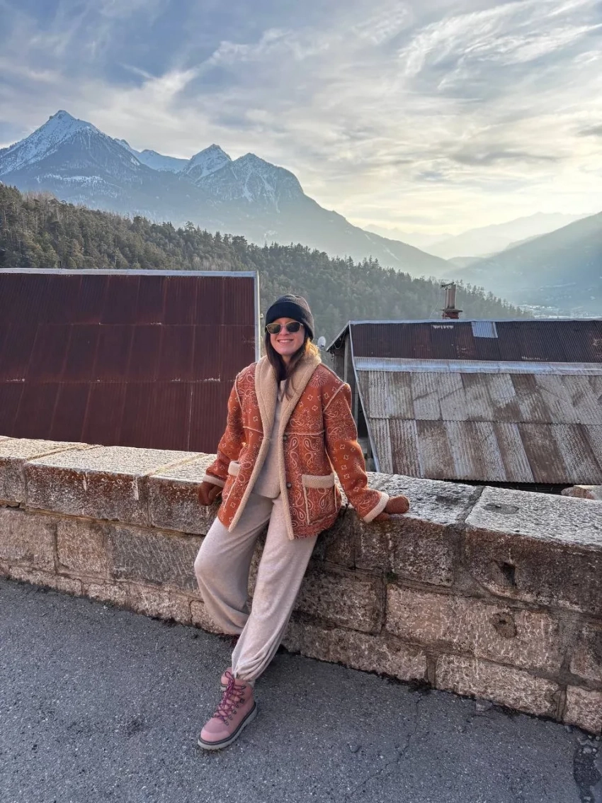 Инфлюенсер и основательница агентства Setters Саша Жаркова отдыхает на горнолыжном курорте во Французских Альпах. Блогер поделилась отпускными снимками в соцсетях.
