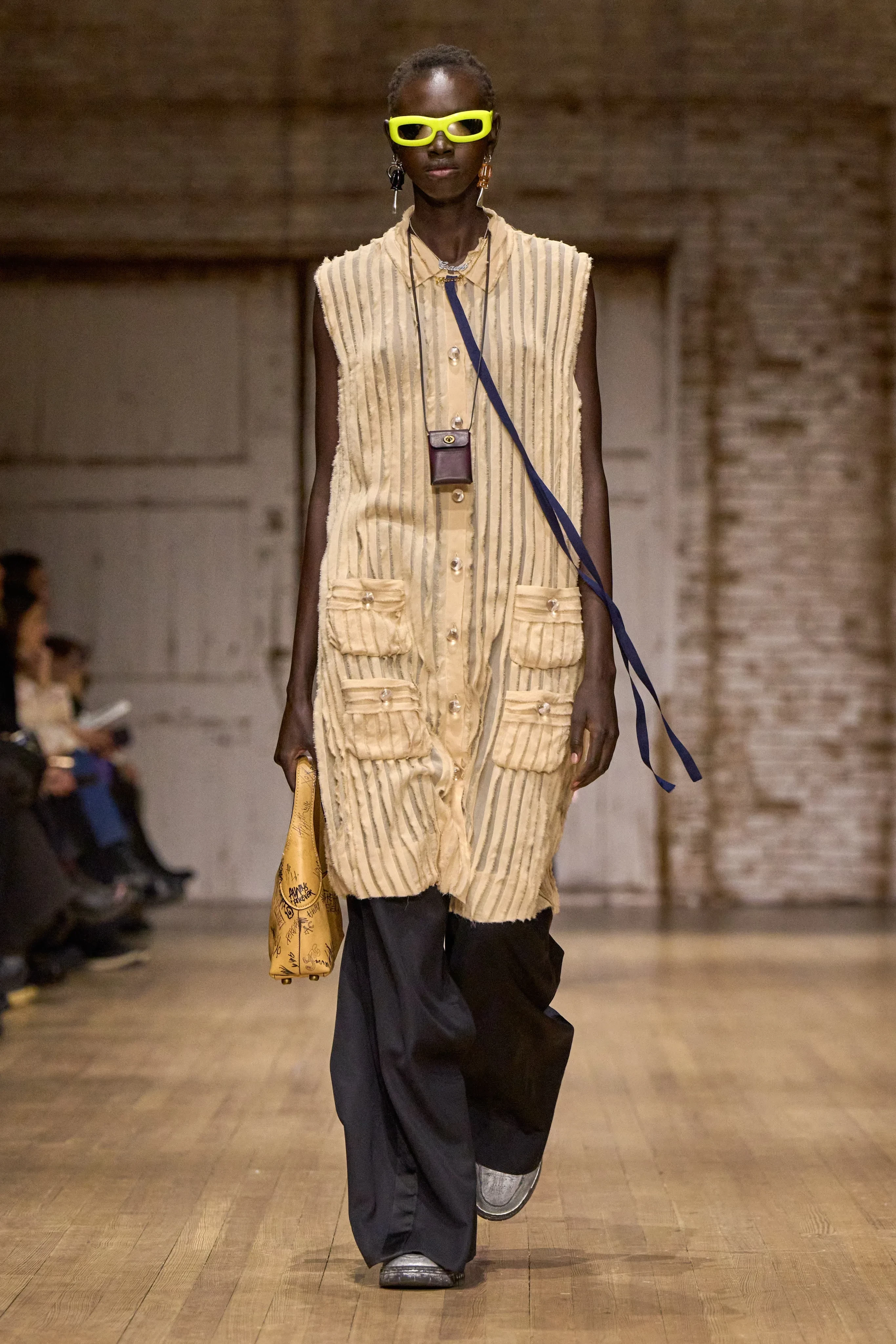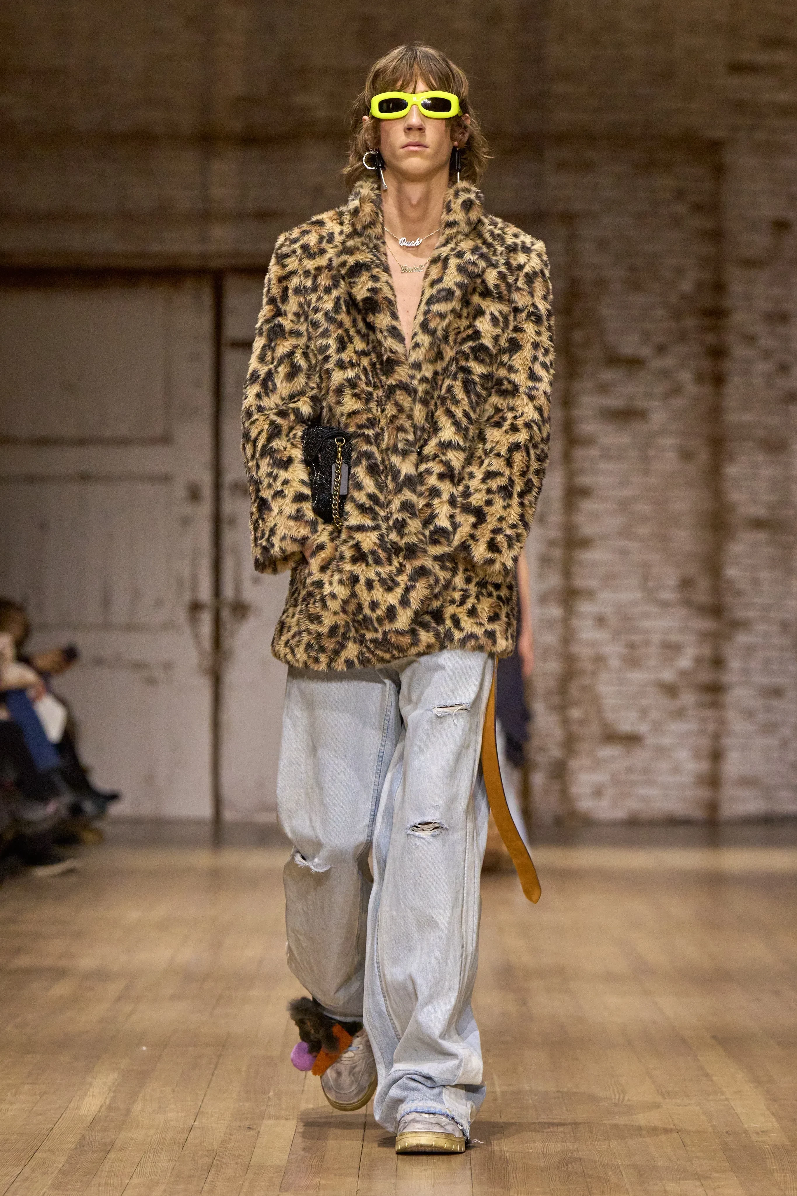 Эмили Ратаковски/Фото: Dimitrios Kambouris/Getty ImagesЭмили Ратаковски/Фото: emrata/Instagram*Холли Бейли/Фото: Dimitrios Kambouris/Getty ImagesЛеннон Галлахер/Фото: Dimitrios Kambouris/Getty ImagesЛеннон Галлахер/Фото: Dimitrios Kambouris/Getty ImagesНа подиуме преобладали вещи в уличном стиле расслабленного силуэта с отсылками к нулевым и детству: широкие брюки на низкой талии с тонкими ремнями, короткие косухи, длинные дублёнки, яркие очки в пластиковых оправах, плюшевая обувь, "разрисованные" футболки, жилетки с "заплатками", леопардовые шубы, сумки-медальоны и брелоки в виде игрушек. В прошлом году бренд оказался в списке самых успешных в рейтинге Lyst и стремительно набирает популярность среди зумеров.