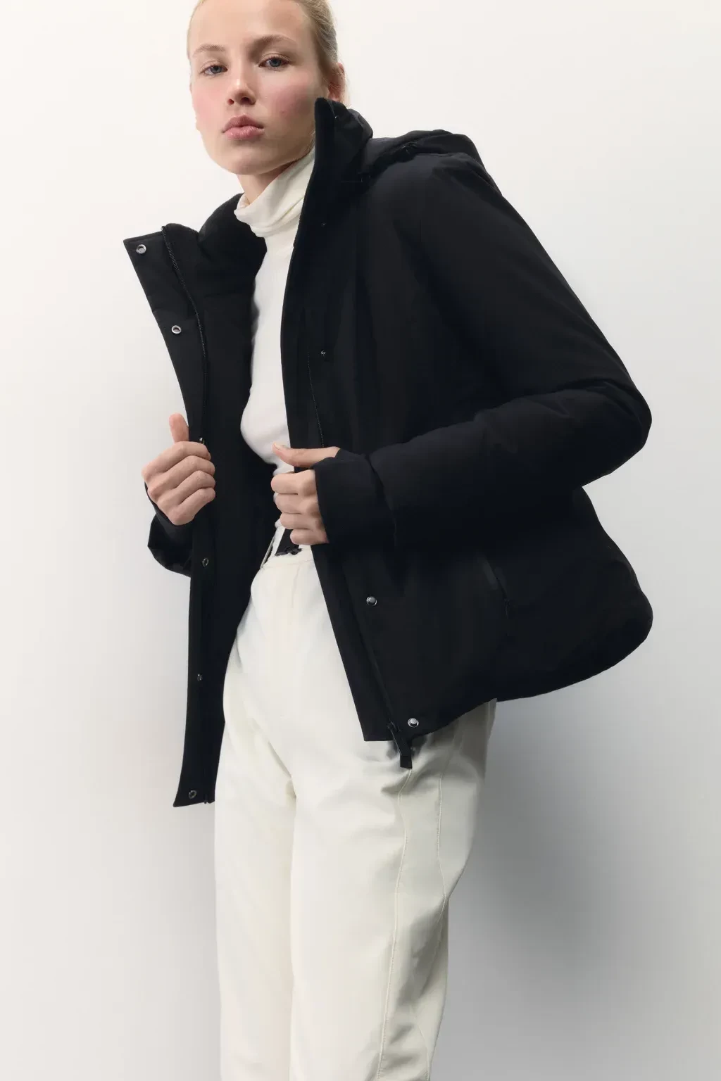 К верхней одежде в стиле Apres ski можно отнести короткие пуховики, приталенные стёганые куртки и даже шубы, в которых сегодня вполне можно встретить девушек на склоне. Конечно, меховые изделия больше подходят для посиделок на склоне с бокалом шампанского или вечеринки и отлично стилизуются с масками и лыжными ботинками.