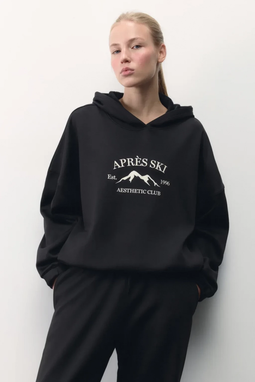 В горах погода может меняться так же часто, как и в городе, поэтому необходимо запастись одеждой для разных случаев и температур. Для активностей советуем присмотреться к ярким флискам aim clo, а для вечерних посиделок подойдёт вязаный кардиган Sela и худи с принтом любимого селебрити американского курорта Аспен от belle you.