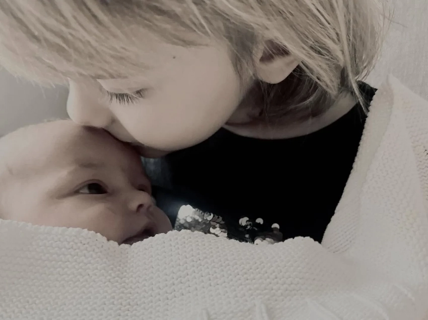 На кадрах все трое сыновей смотрят на сестру Инес. На другом снимке запечатлён Юлиан, который целует сестру в лоб.