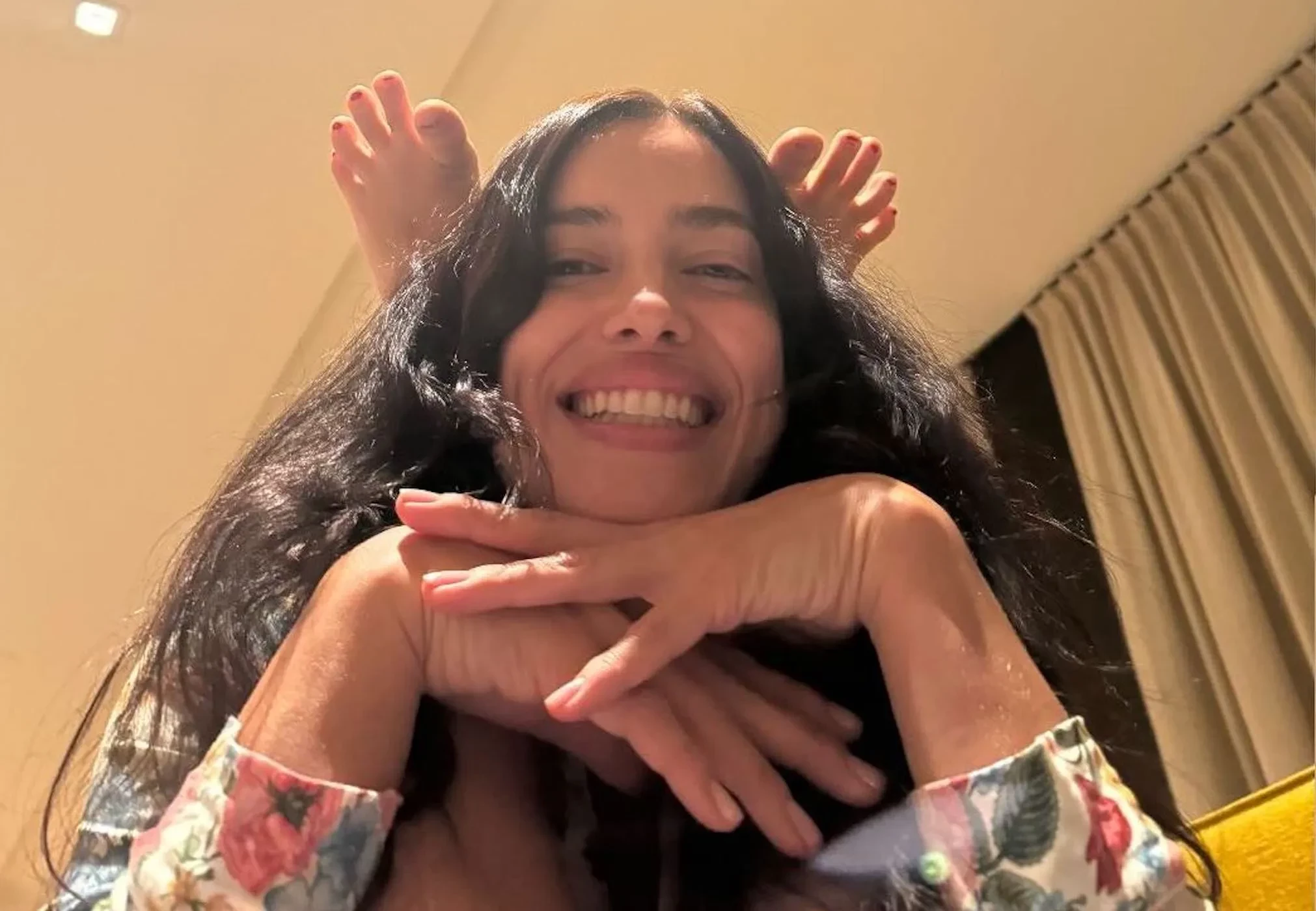"Быть мамой — это что-то вроде того", — подписала Шейк кадр, на котором видны только ноги семилетней дочери, так как её лицо модель никогда не публикует. На других фото Ирина показала свою собаку породы мальтипу по кличке Арахис и в преддверии Дня всех влюблённых назвала её "своим Валентином".