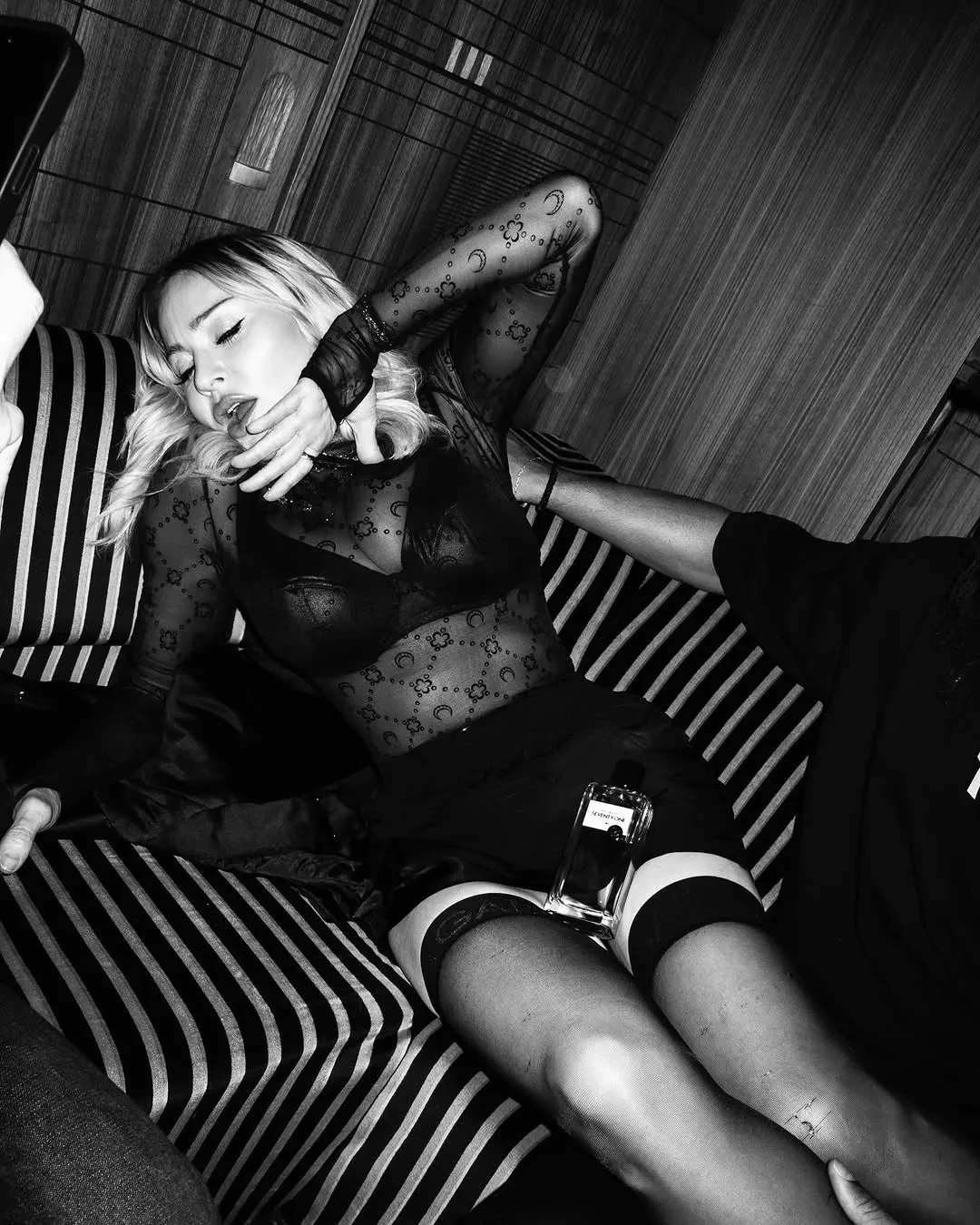 На снимках 66-летняя певица позирует в прозрачном лонгсливе, чулках и шубе в компании Мерта Аласа, модели Авенг Аде-Чуол, 22-летнего рэпера NLE Choppа и своего 28-летнего бойфренда Акима Морриса.