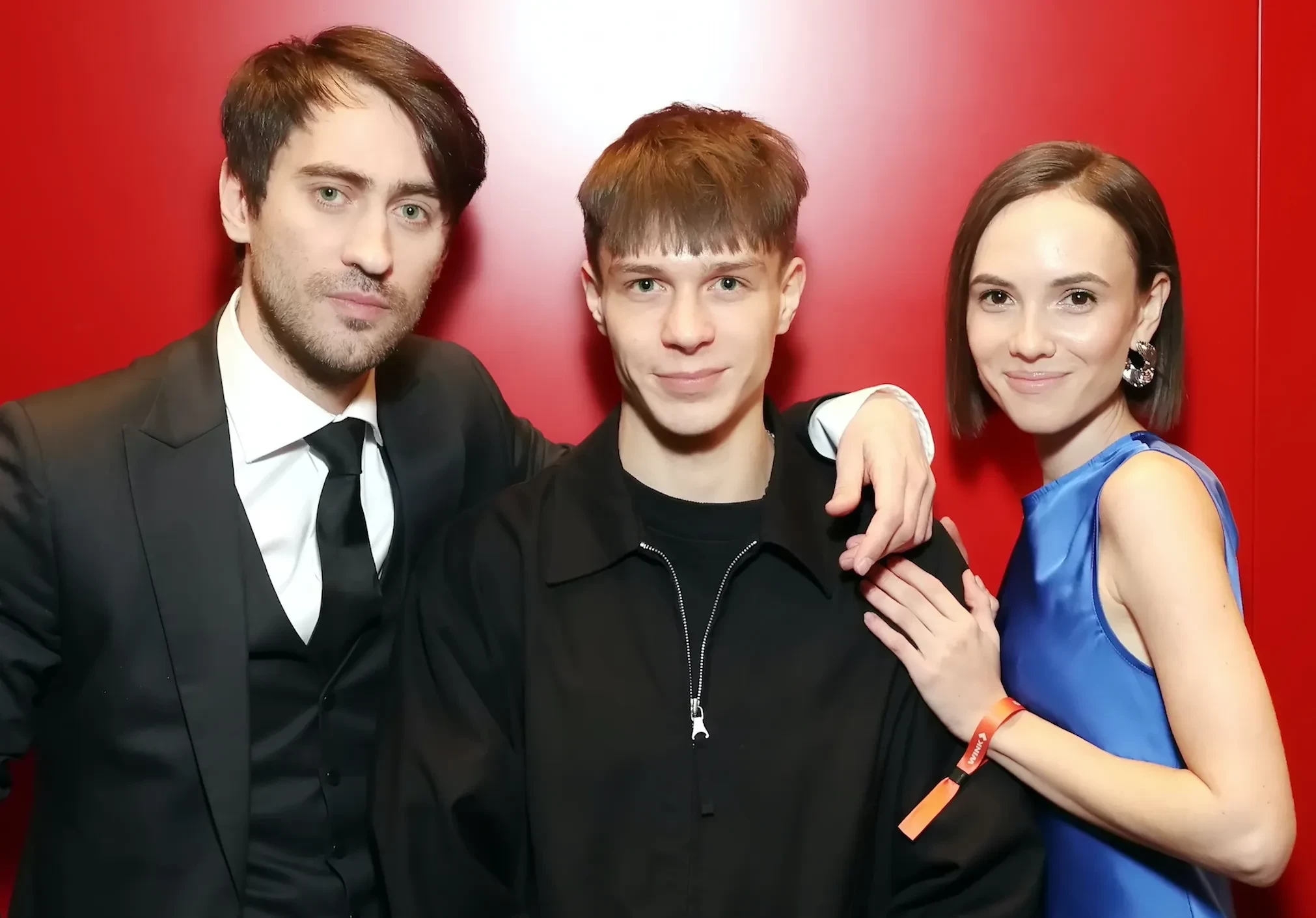 Фёдор Бондарчук (снова без обручального кольца), Стася Милославская и Глеб Калюжный на премьере сериала "Челюскин. Первые"