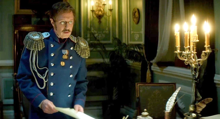 - Интересно, что было сделано для вашего визуального соответствия с героем?- Бенкендорф – человек с крепким внутренним стержнем. В его образе этот стержень наглядно демонстрирует мундир. У него их два: парадный и рабочий. Он все время в них, это его вторая кожа. Было важно, чтобы они сидели идеально, мундиры его держат. Он человек с жестким, холодным взглядом, с очень трезвым подходом к жизни, без романтических иллюзий, чеканно выражающий мысли и не сомневающийся в своих жизненных принципах и видении происходящих вокруг него событий.