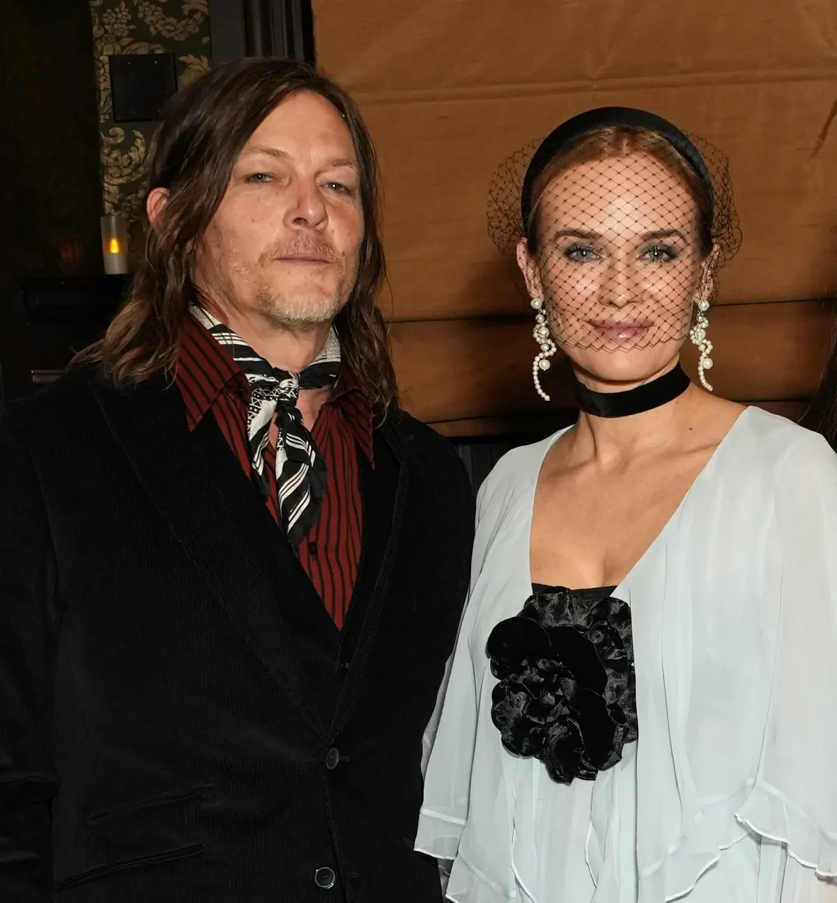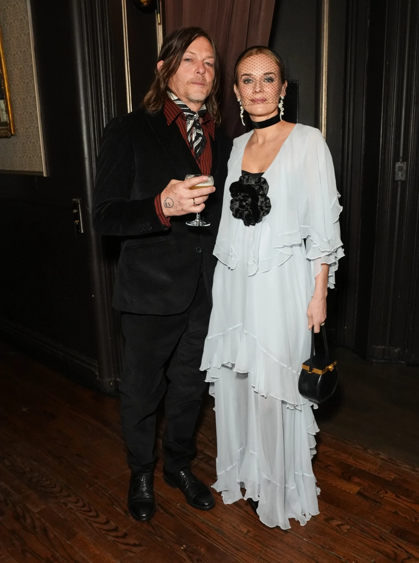 48-летняя Диана Крюгер выбрала для вечера белое платье с оборками и чёрным цветком в стиле бохо, дополнив образ чокером и вуалью. 56-летний Норман Ридус позировал рядом в чёрном костюме с красной рубашкой в полоску. 53-летний Джастин Теру выбрал костюм с тонким галстуком, а его возлюбленная — короткое чёрное платье.