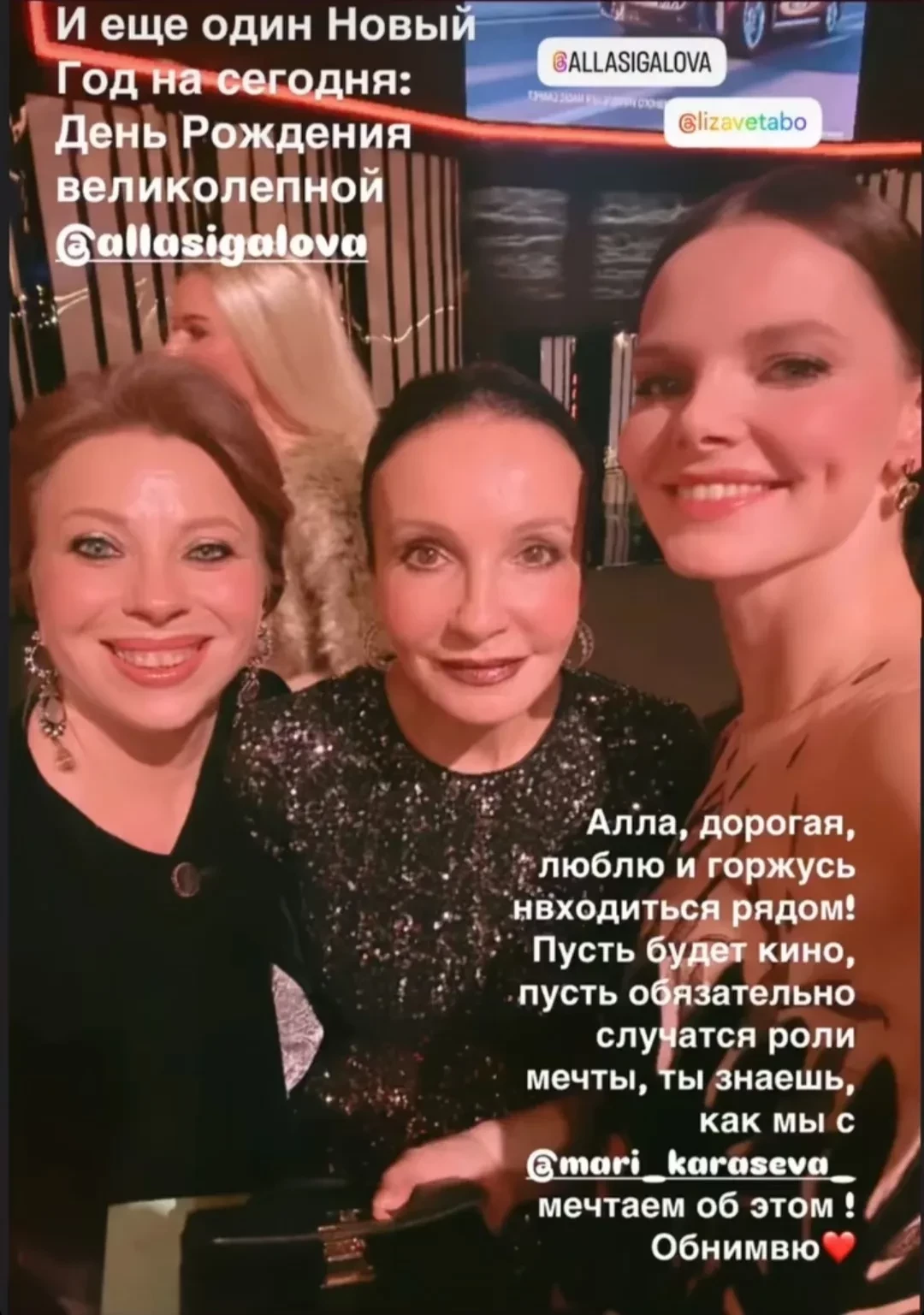 Главные новости » Шоу-Бизнес » Алла Сигалова отметила день рождения с Анной Чиповской и Софьей Эрнст